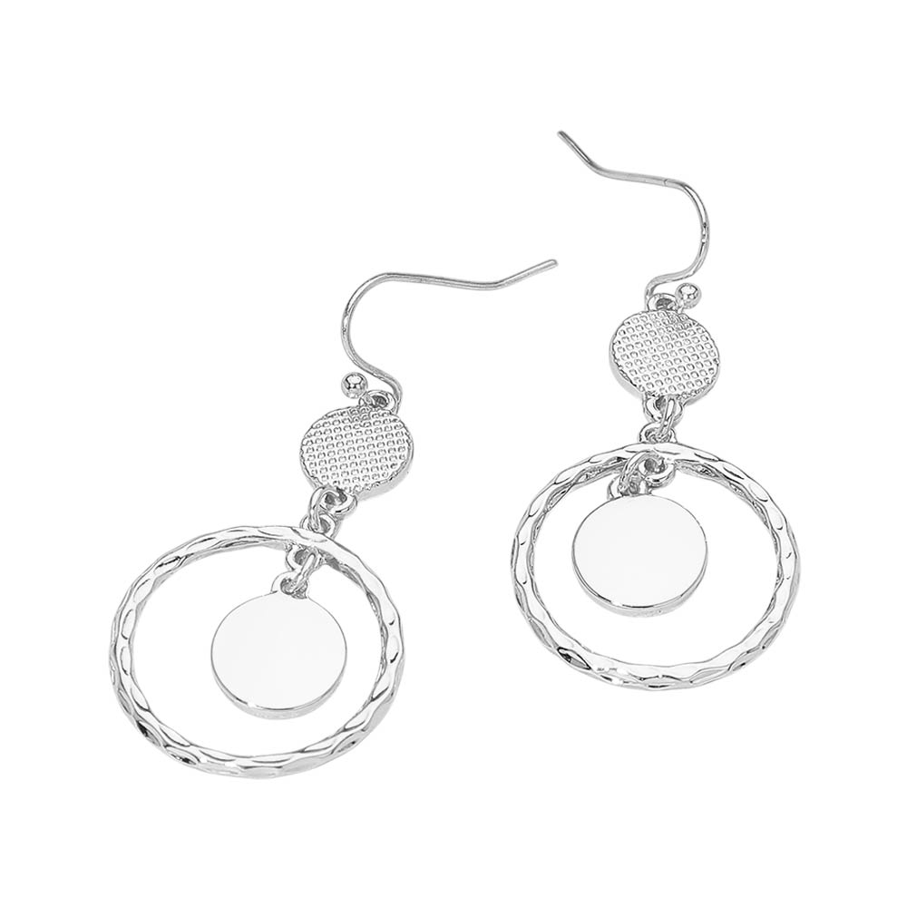 Textured Metal Hoop Disc Link Drop Earrings