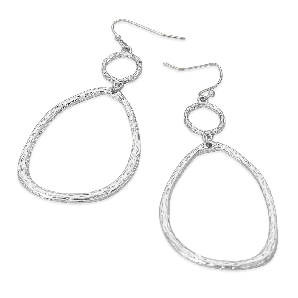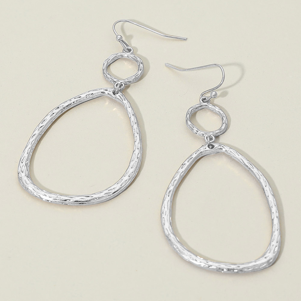 Textured Metal Organic Open Oval Link Drop Earrings Textured Metal Organic Open Oval Link Drop Earrings