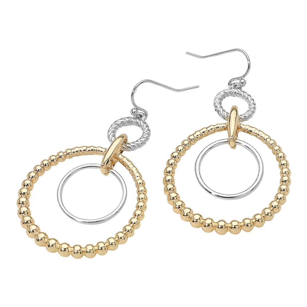 Two Tone Metal Beaded Ring Link Drop Earrings