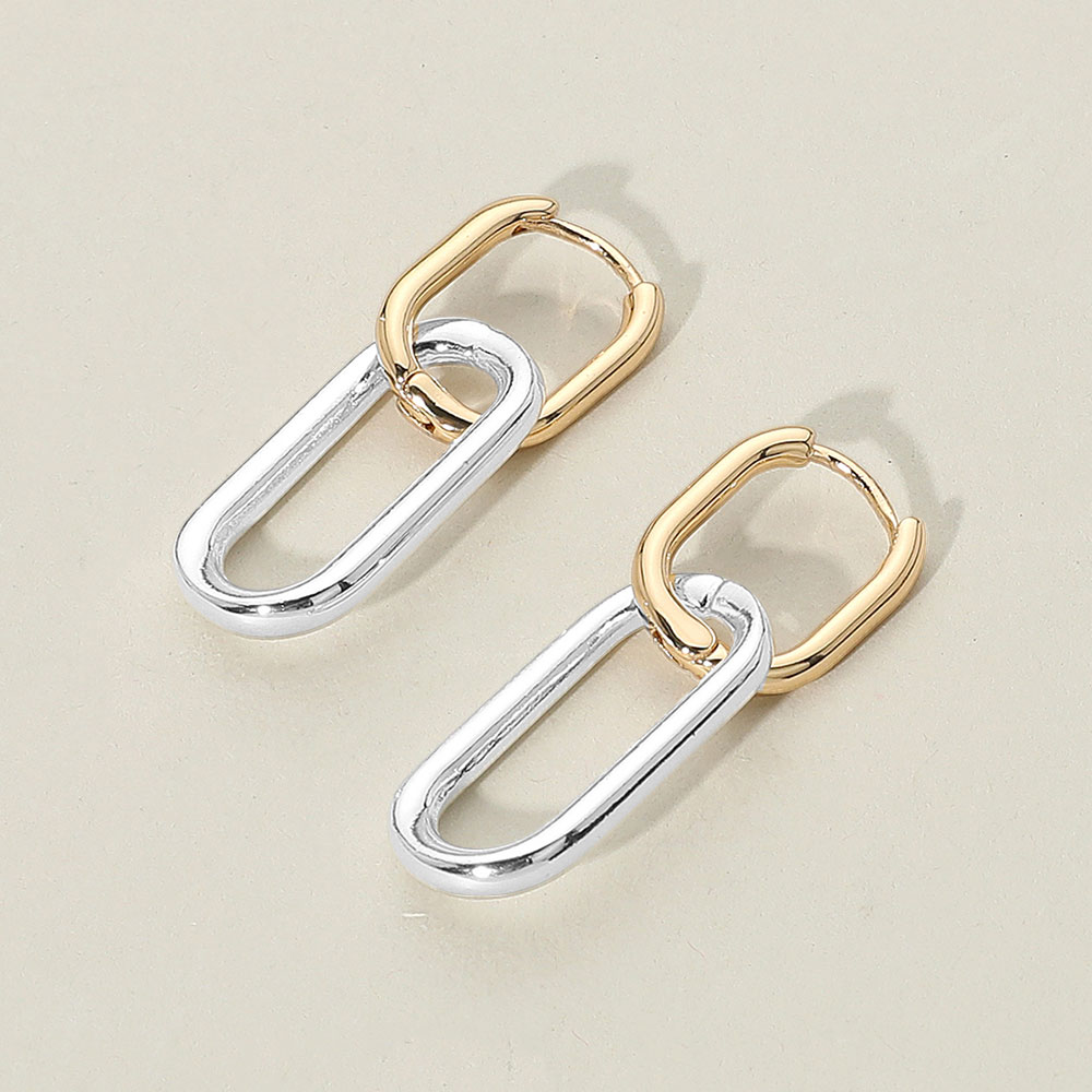 Details • Size : 0.5" X 1.4" • Huggie Back • Modern earrings featuring interlinked open oval shapes in a sleek, minimal form. Stylish elongated drops ideal for contemporary looks. • Lead and Nickel Compliant