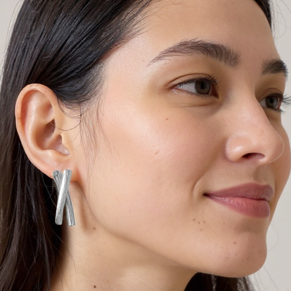 White Gold Dipped Crisscross Bar Earrings White Gold Dipped Crisscross Bar Earrings White Gold Dipped Crisscross Bar Earrings