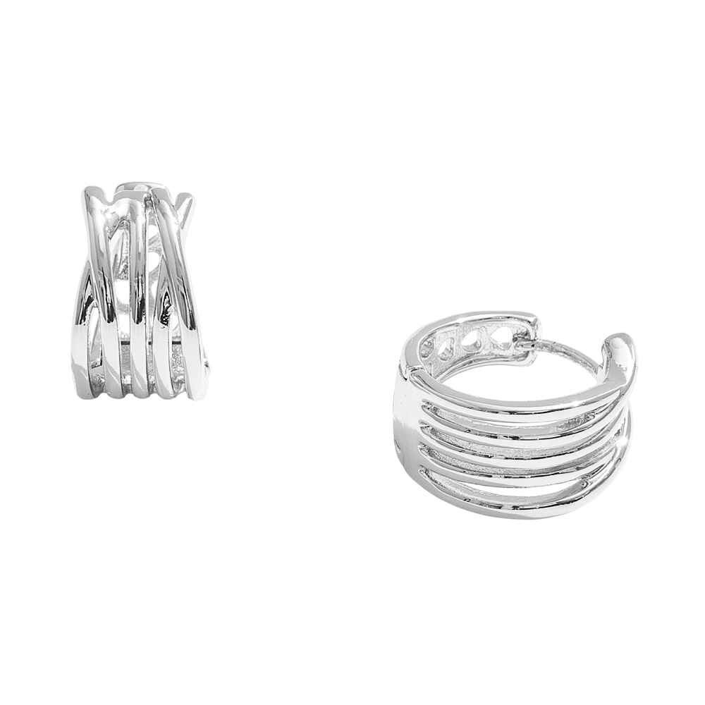White Gold Dipped Layered Huggie Hoop Earrings White Gold Dipped Layered Huggie Hoop Earrings