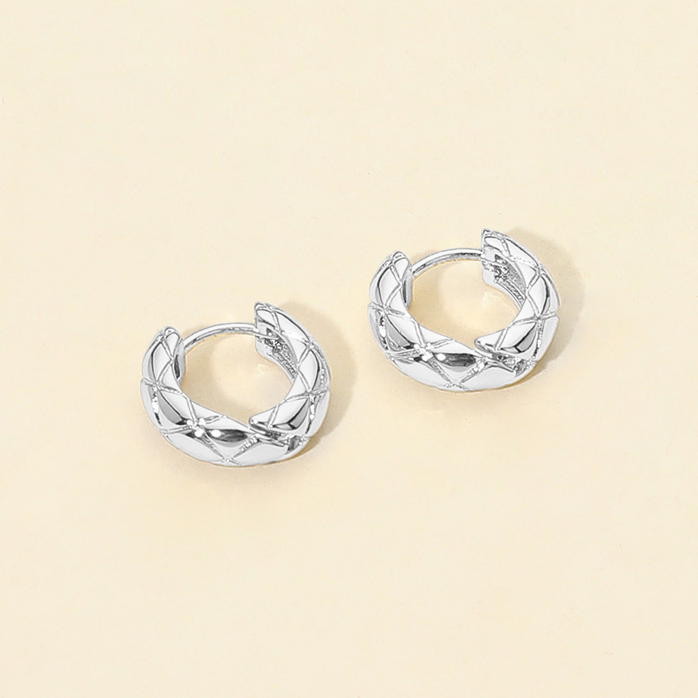 Details • Size : 0.6" X 0.6" X 0.25" • Huggie Back • Chic quilt pattern hoop earrings featuring a textured design that adds elegance and detail to a classic style. Perfect for both casual and dressy looks, these versatile hoops bring a modern twist to timeless accessories, making them a stylish addition to any jewelry collection. • Brass • Gold Dipped • Hypoallergenic • Lead and Nickel Compliant • Made In Korea