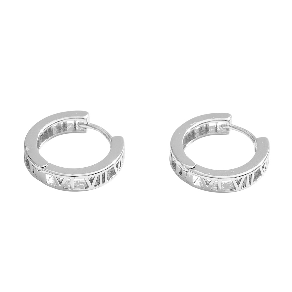 Details • Size : 0.6" X 0.6" X 0.2" • Huggie Back • These Roman numeral hoop earrings showcase a timeless cutout design that blends classic symbolism with modern style. Their sleek silhouette makes them versatile for everyday wear while adding a distinctive touch to both casual and elevated outfits. • Brass • Gold Dipped • Hypoallergenic • Lead and Nickel Compliant • Made In Korea