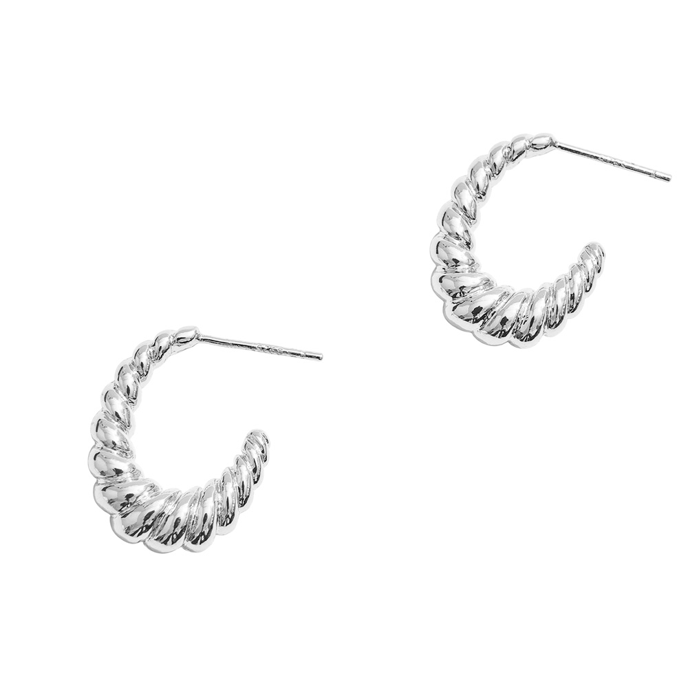 Details • Size : 0.7" X 0.75" • Post Back • Elevate your style with these twisted ribbed hoop earrings, featuring a bold sculptural design that adds depth and texture. Their sleek, polished finish makes them the perfect blend of modern elegance and timeless charm, ideal for day-to-night wear. • Brass • Gold Dipped • Hypoallergenic • Lead and Nickel Compliant • Made In Korea