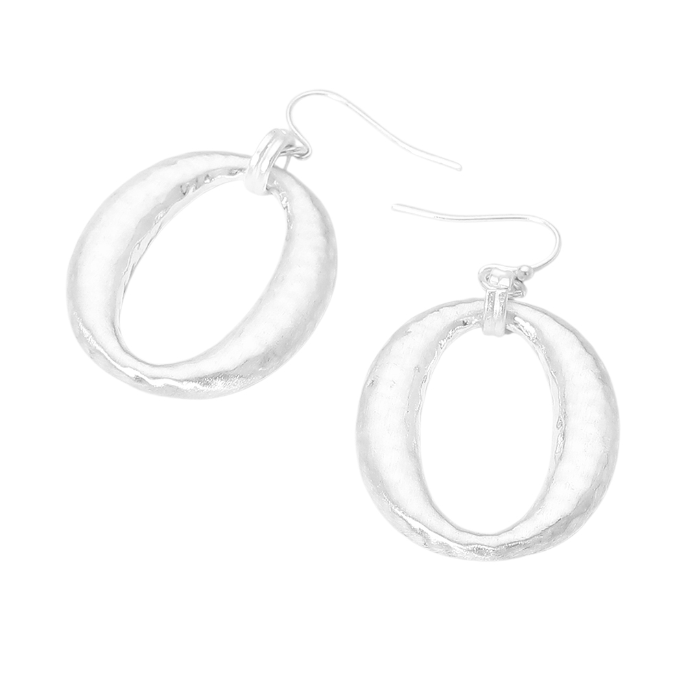 Worn Metal Hammered Metal Open Oval Drop Earrings