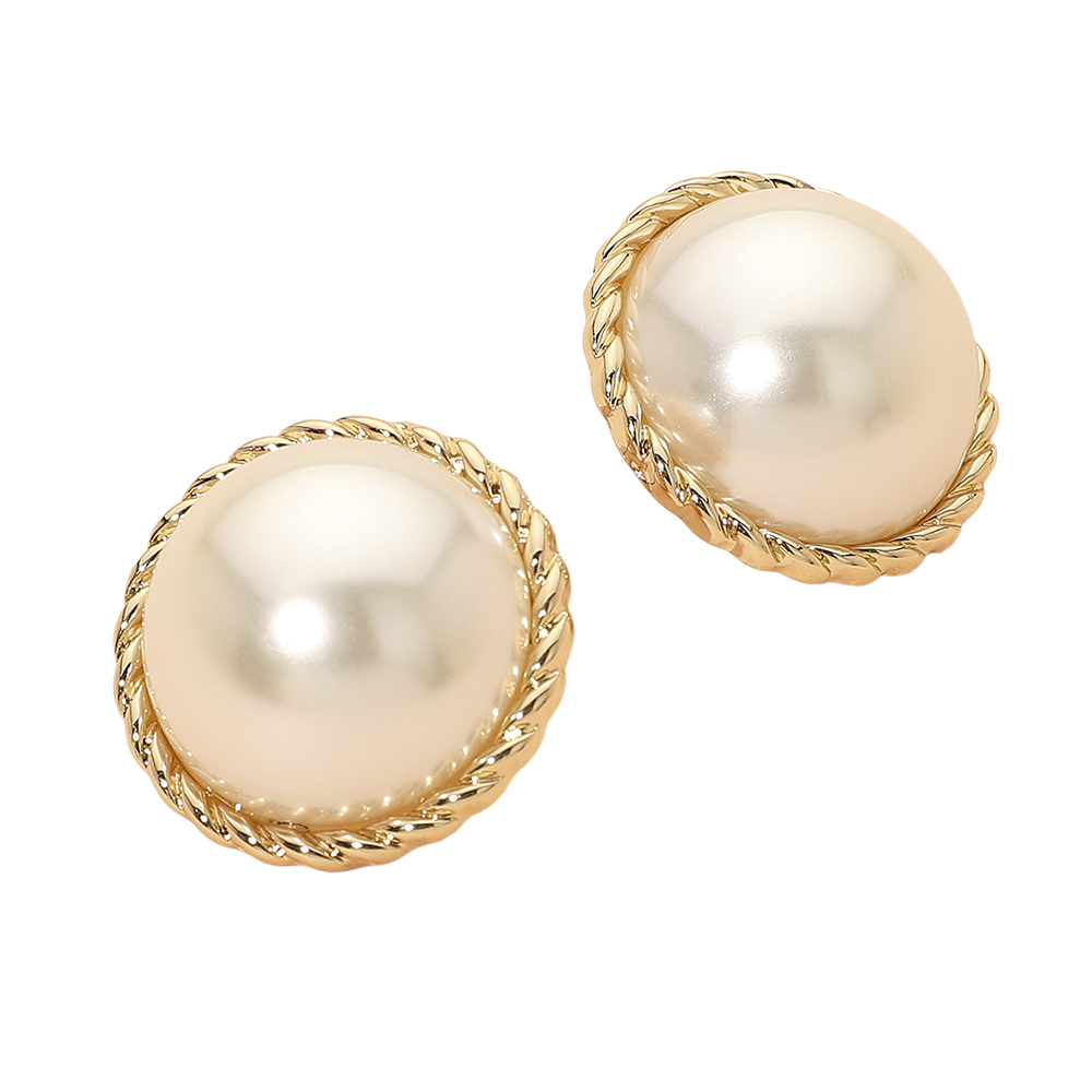 • These classic round pearl feature a polished, raised centerpiece framed by a twisted border, creating a timeless and elegant silhouette. Lightweight and refined, they offer a versatile touch that enhances both everyday style and special-occasion looks with effortless sophistication.