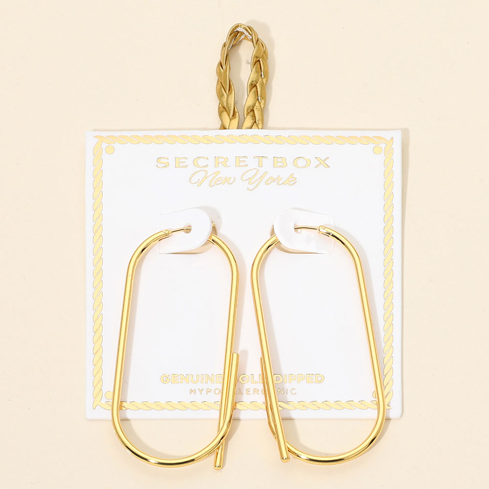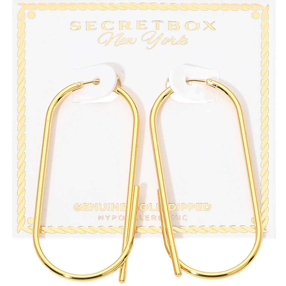SECRET BOX_Genuine Gold Dipped Elongated Oval Pin Catch Hoop Earrings SECRET BOX_Genuine Gold Dipped Elongated Oval Pin Catch Hoop Earrings