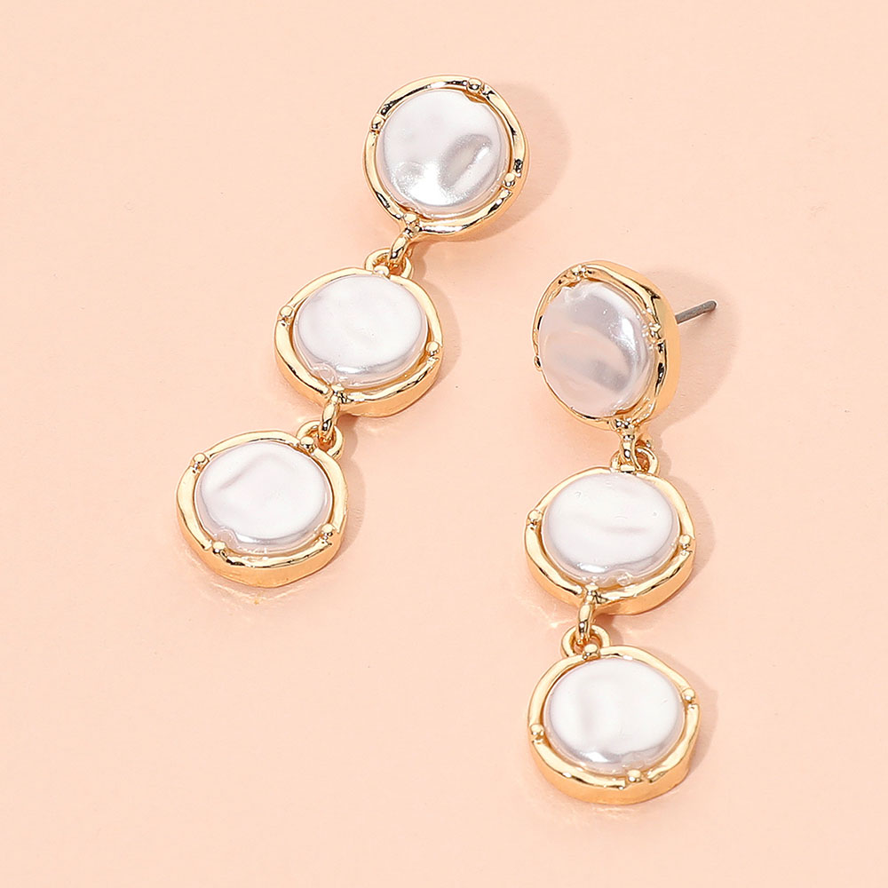 • Elegant triple pearl cluster drop earrings featuring stacked circular accents that sway with natural movement, creating a refined statement silhouette. Designed to add depth and graceful shine to everyday outfits while transitioning seamlessly into evening looks with modern style appeal.