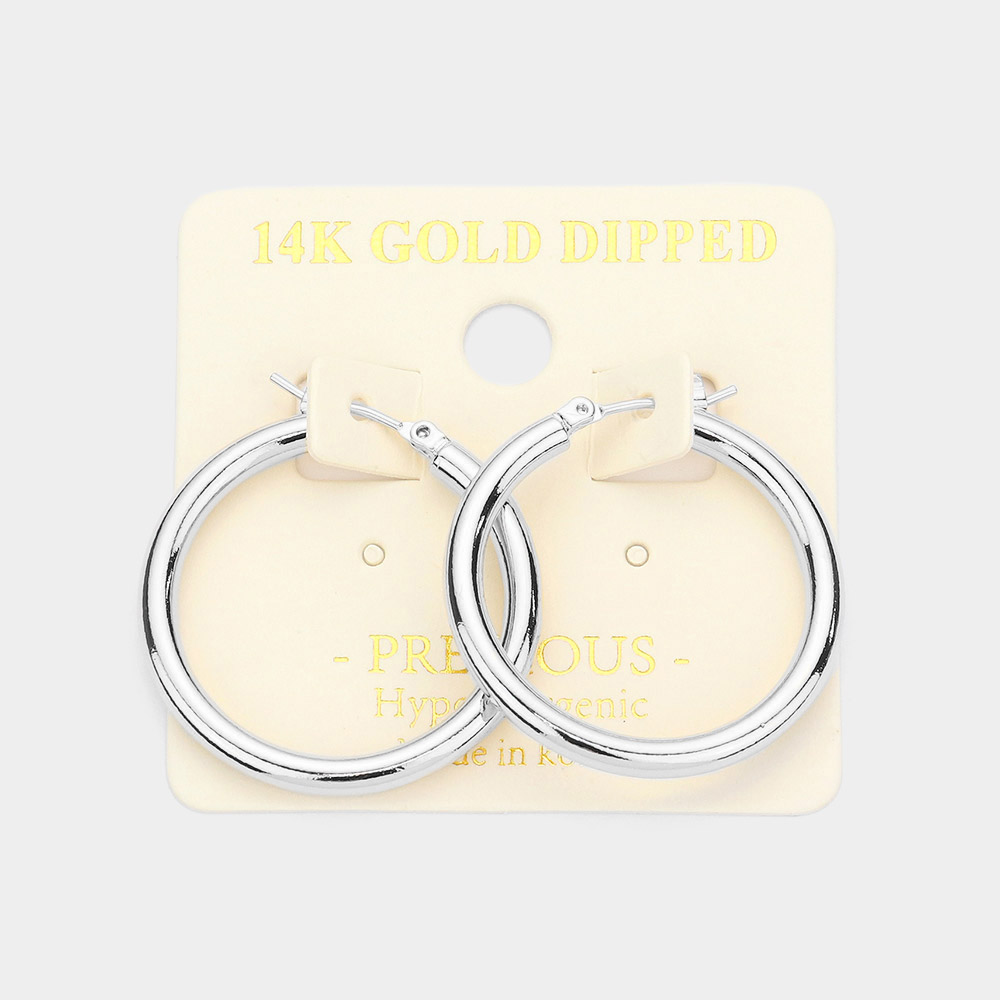 14K White Gold Dipped Hypoallergenic Metal Hoop Pin Catch Earrings