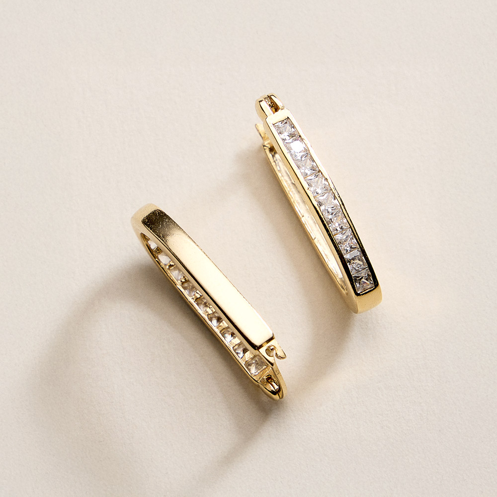 Details • Size : 0.7" X 1.2" • Pin Catch • Sleek oval hoop earrings designed with a smooth, modern silhouette that adds effortless polish to any look. Lightweight and easy to wear, they pair beautifully with casual outfits, workwear, and evening styles, making them a versatile essential for daily wear and gifting. • CZ Cubic Zirconia • Gold Filled • Hypoallergenic • Lead and Nickel Compliant • Made In Brazil