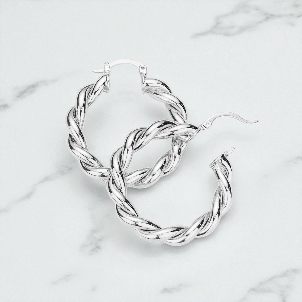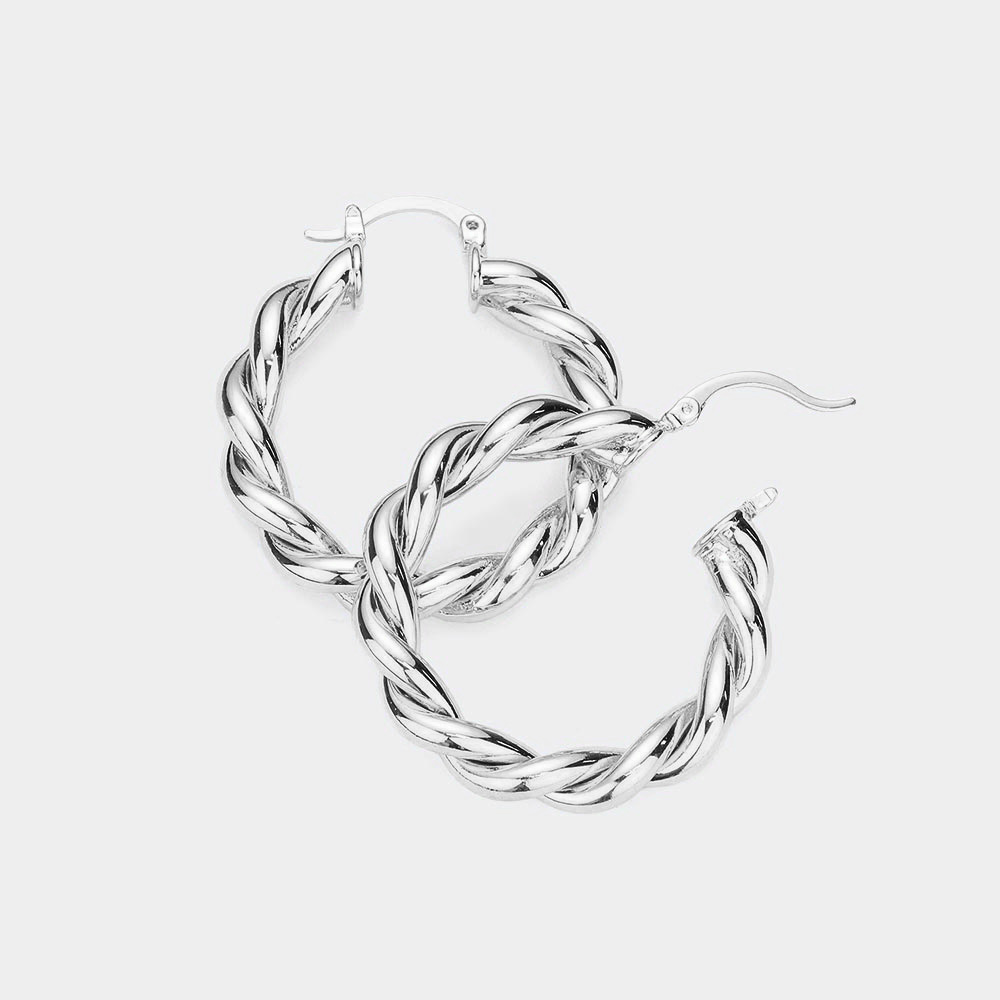 Two Tone CZ Stone Paved Oval Accent Braided Cuff Bracelet