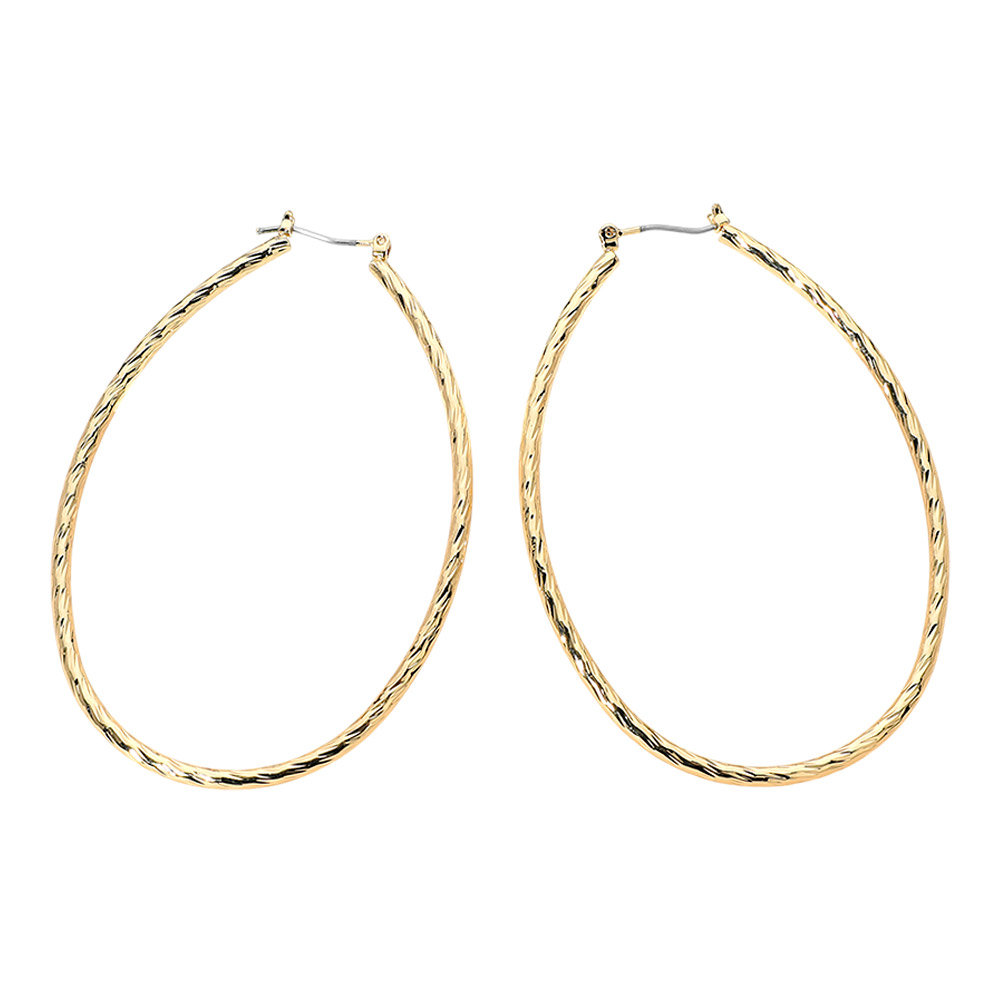 Details • Size : 2" X 2.8" • Pin Catch • Elegant oval hoop earrings featuring a subtle twisted texture that adds depth and visual interest to a classic silhouette. Lightweight and easy to style, these hoops transition seamlessly from everyday wear to special occasions, making them a versatile must-have for modern jewelry collections and gift-ready assortments. • Lead and Nickel Compliant • Gold Dipped