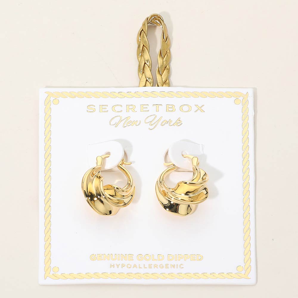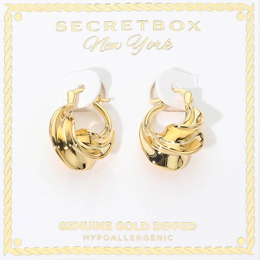 SECRET BOX_Genuine Gold Dipped Twist Pin Catch Hoop Earrings SECRET BOX_Genuine Gold Dipped Twist Pin Catch Hoop Earrings SECRET BOX_Genuine Gold Dipped Twist Pin Catch Hoop Earrings