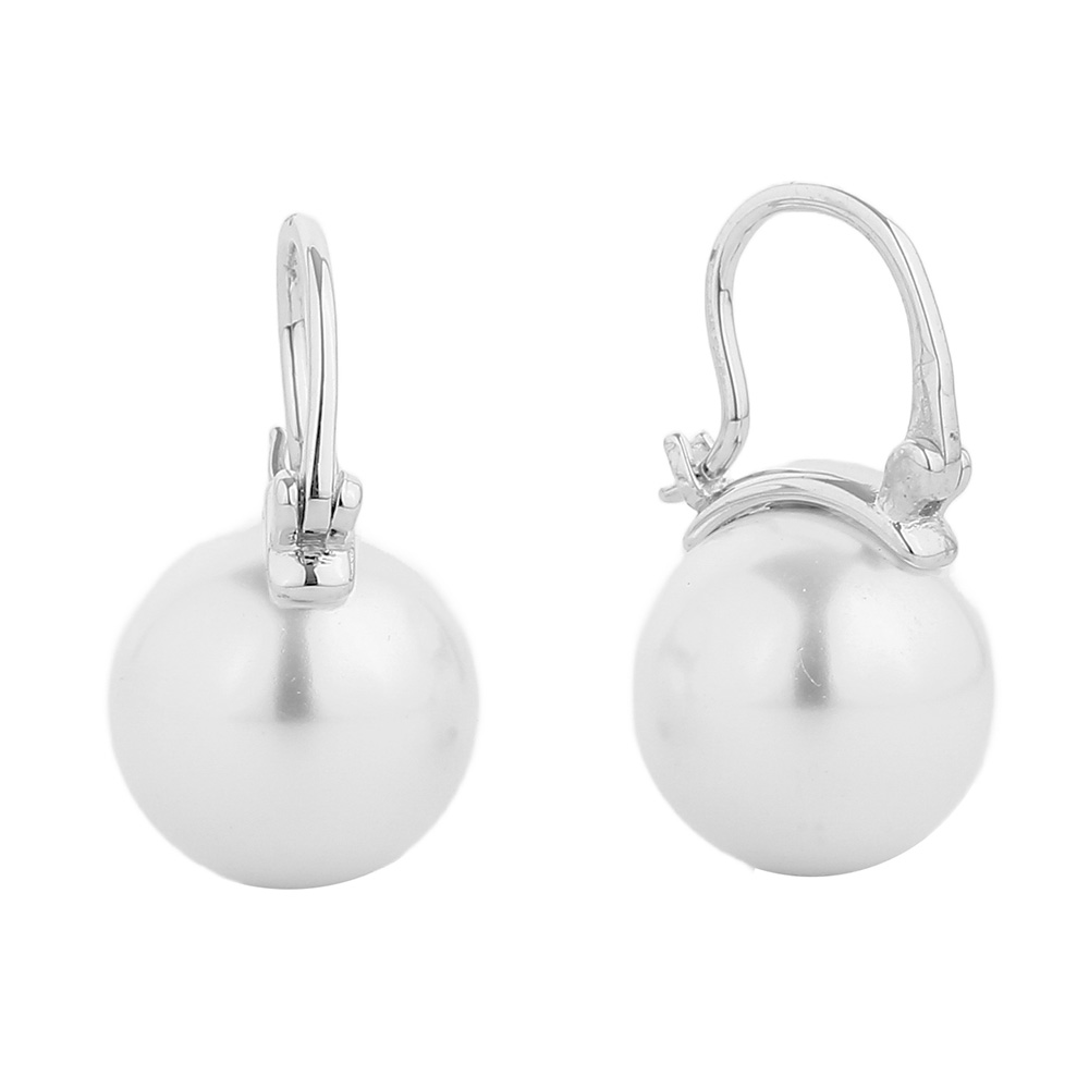 Details • Size : 0.6" X 0.9" • Pin Catch • Timeless pearl drop earrings featuring a smooth round finish and secure leverback closure. A refined accessory that adds sophistication and grace, perfect for both daily wear and formal occasions with enduring elegance. • Brass • Gold Dipped • Hypoallergenic • Lead and Nickel Compliant • Made In Korea