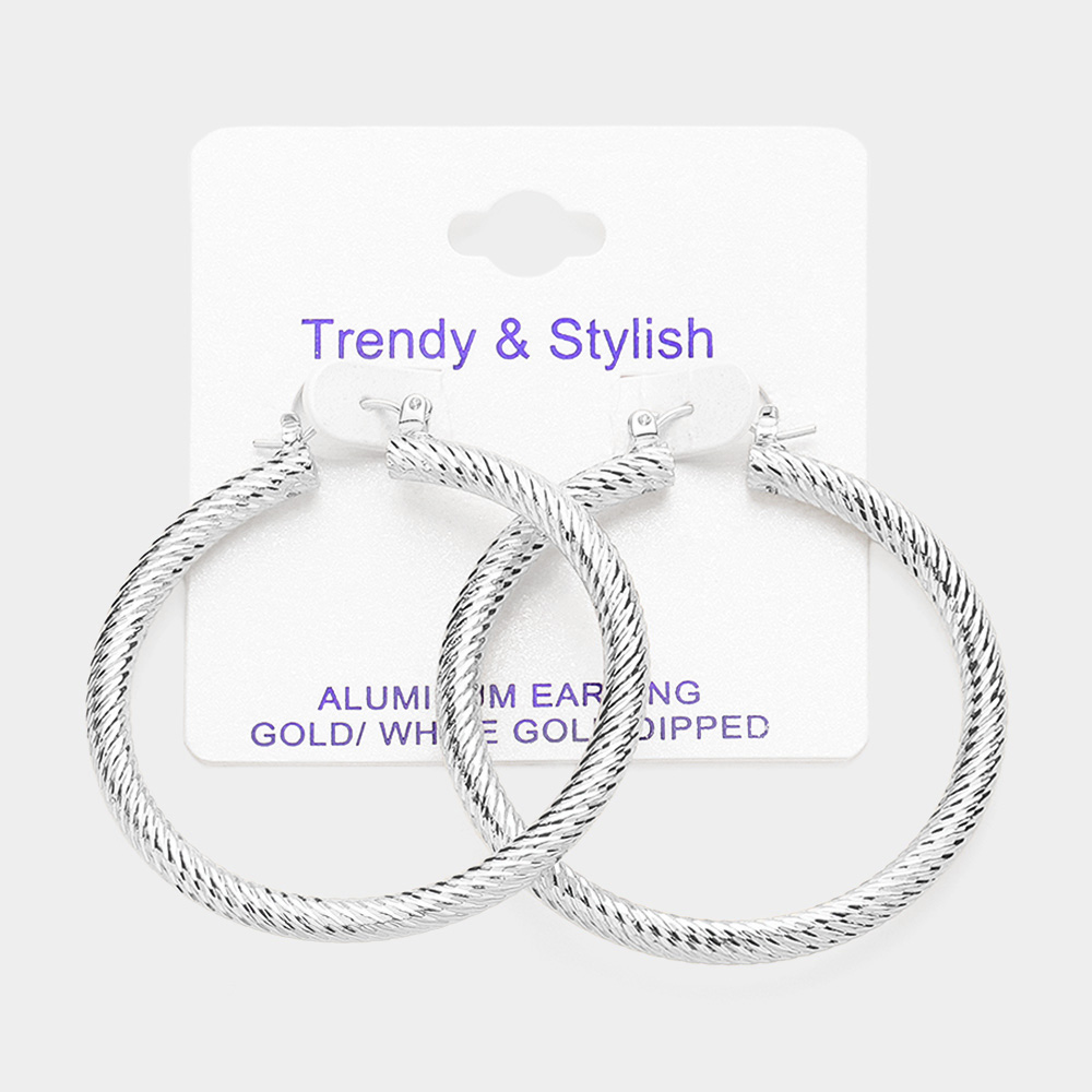 White Gold Dipped Textured Aluminum Hoop Earrings