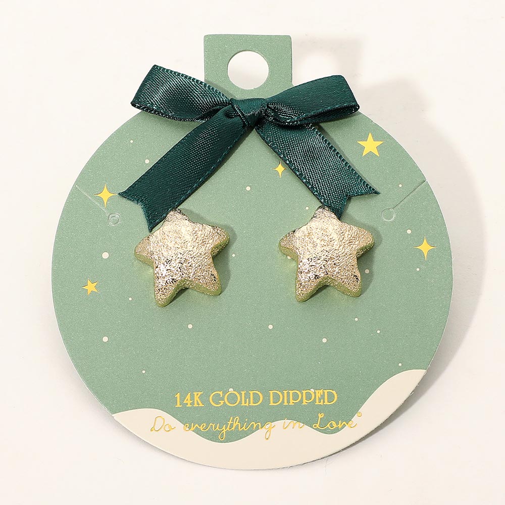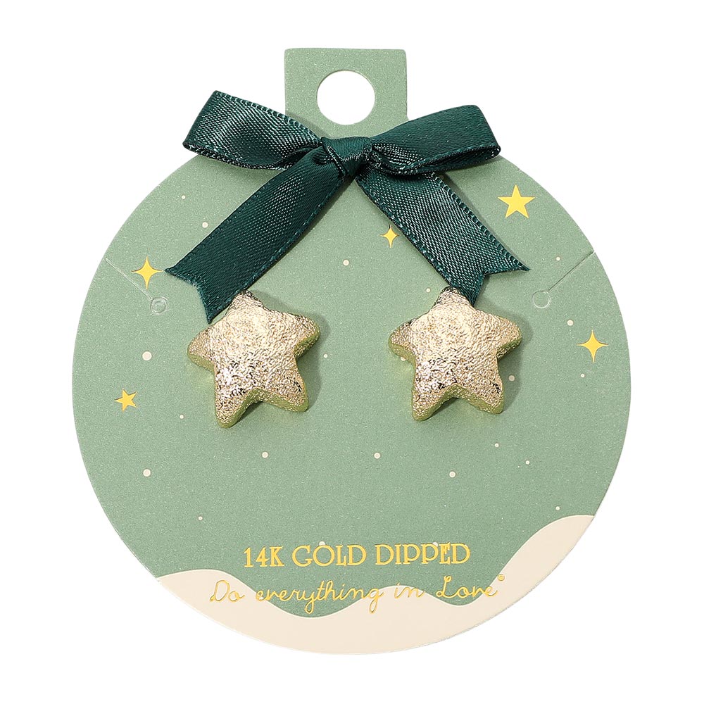 Details • Size : 0.8" X 0.8" • Post Back • Whimsical textured star stud earrings featuring a soft sculpted shape with a playful, festive look. Their simple yet charming design makes them ideal for everyday wear, gifting, or adding a cute seasonal accent to outfits. A versatile accessory with a fun, cheerful touch perfect for celebrations. • Gold Dipped • Hypoallergenic • Lead and Nickel Compliant • Made In Korea