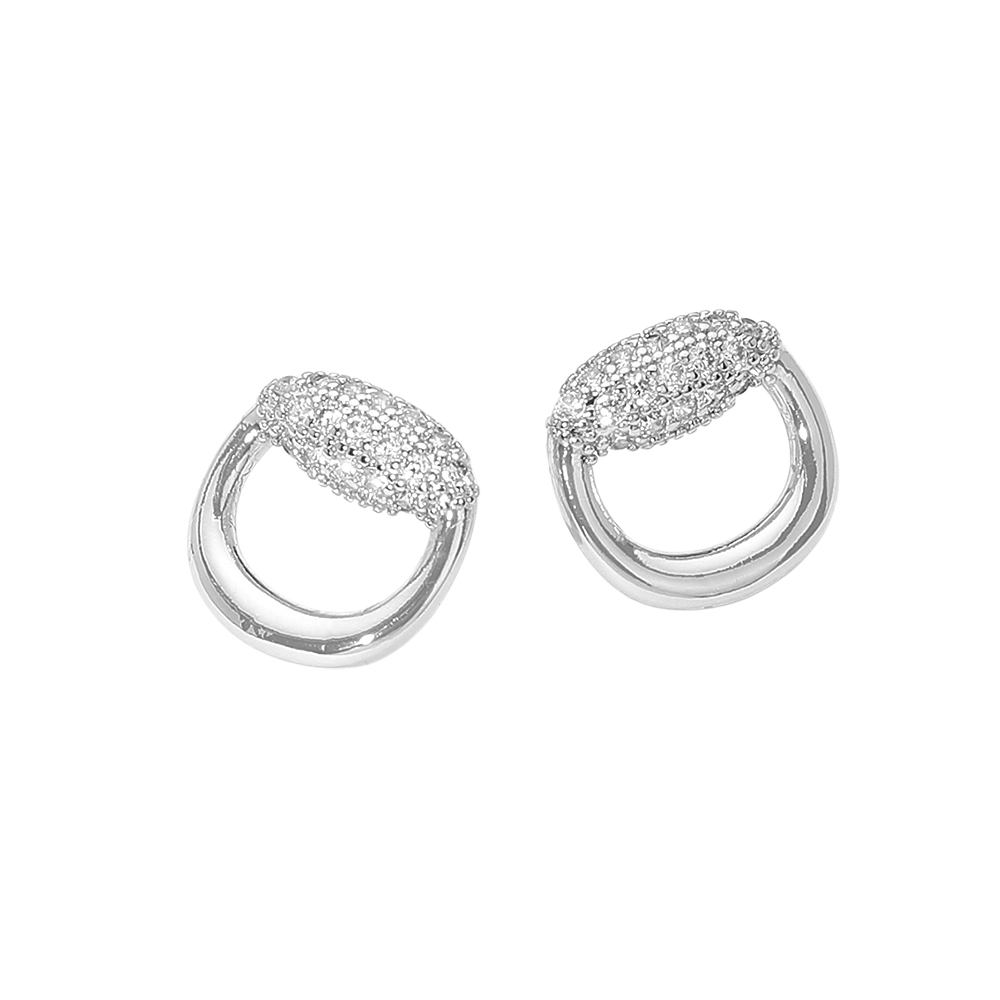 • Modern open circle stud earrings featuring a softly rounded silhouette topped with shimmering CZ pavĂ© detail. Designed to add subtle sparkle and dimension, this refined style transitions easily from everyday wear to evening looks, making it a versatile and giftable accessory choice for fashion-forward collections.