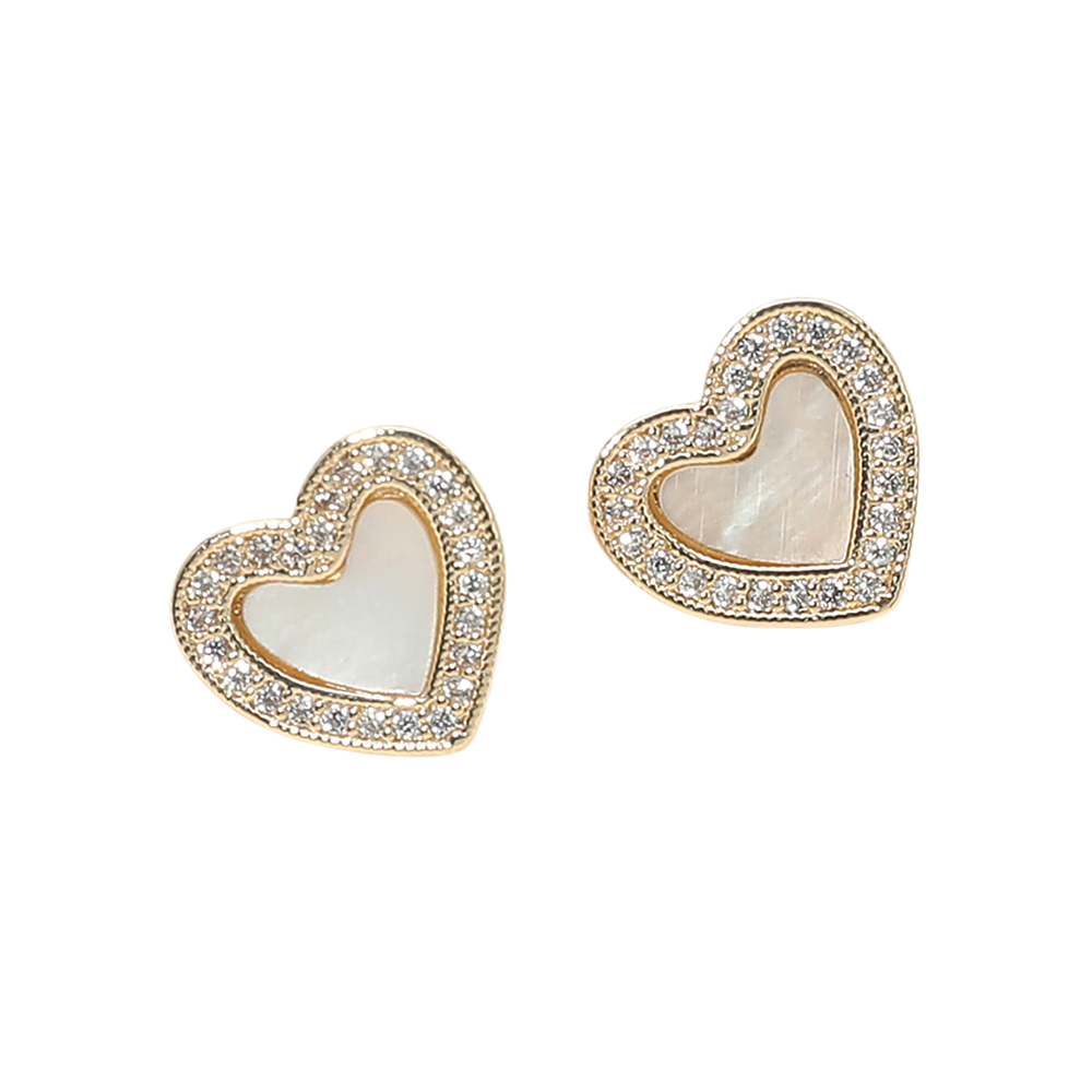 14K Gold Plated CZ Stone Pave Rim Mother of Pearl Heart Stud Earrings 14K Gold Plated CZ Stone Pave Rim Mother of Pearl Heart Stud Earrings
