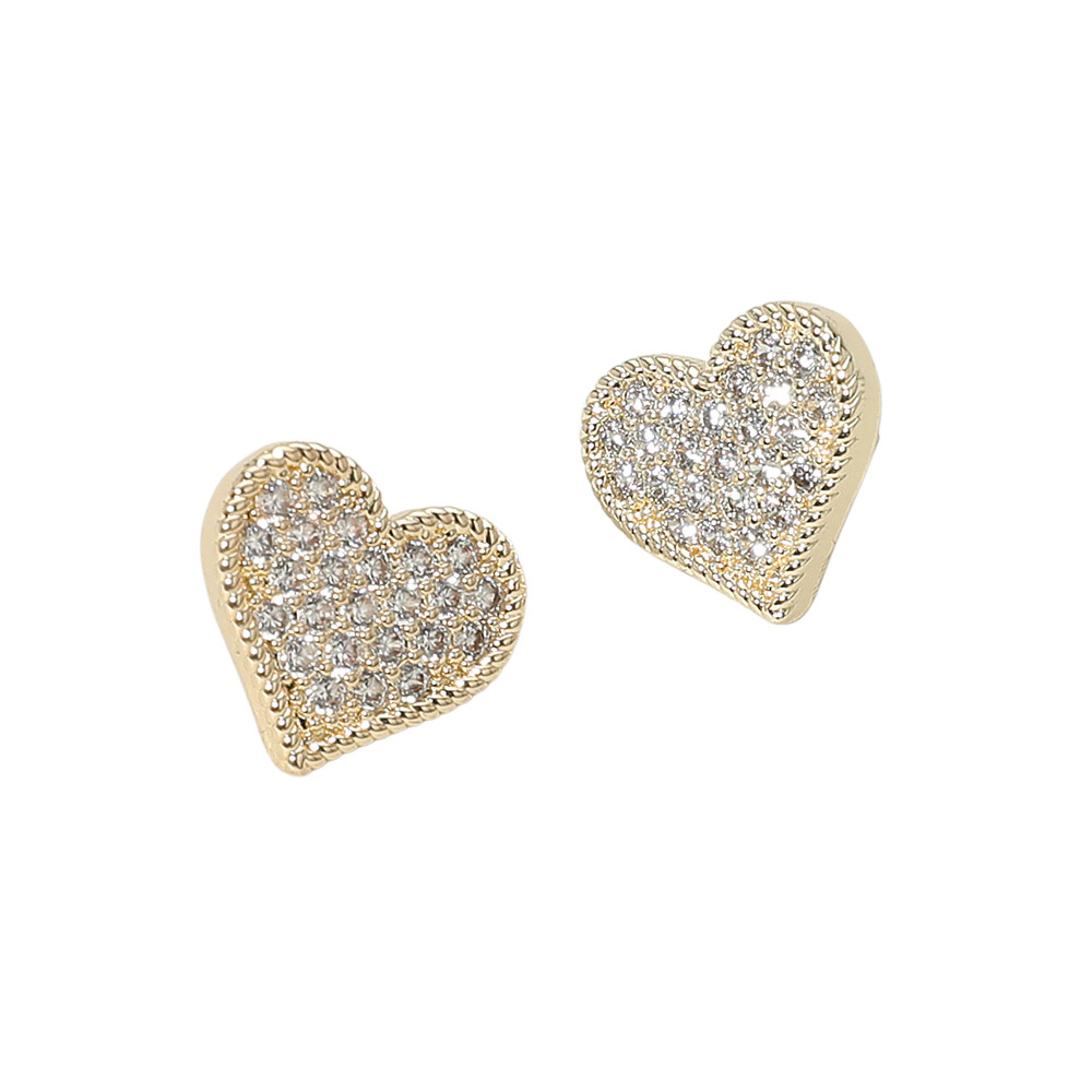 • Add a touch of romance to your look with these crystal heart stud earrings, featuring a sparkling pavĂ© design framed by delicate textured detailing. Perfect for everyday wear or gifting, they bring timeless elegance and feminine charm to any jewelry collection.
