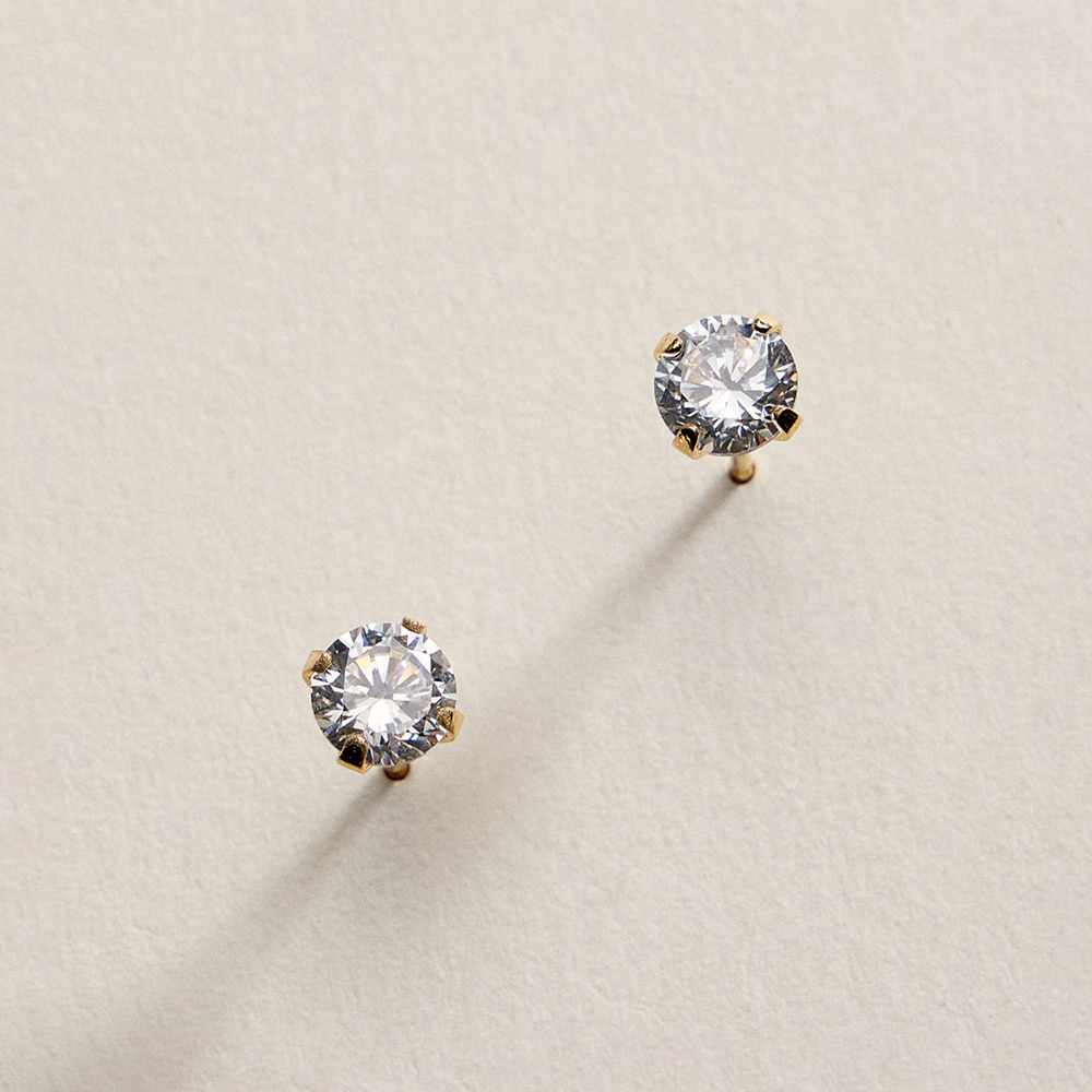 Details • Size : 0.2" X 0.2" • Post Back • Timeless round CZ stud earrings designed for everyday elegance. Featuring a clean, minimal silhouette with brilliant sparkle, these studs are perfect for daily wear, work, or special occasions. A versatile essential that layers easily with other earrings or shines beautifully on its own. • CZ Cubic Zirconia • Gold Filled • Hypoallergenic • Lead and Nickel Compliant • Made In Brazil