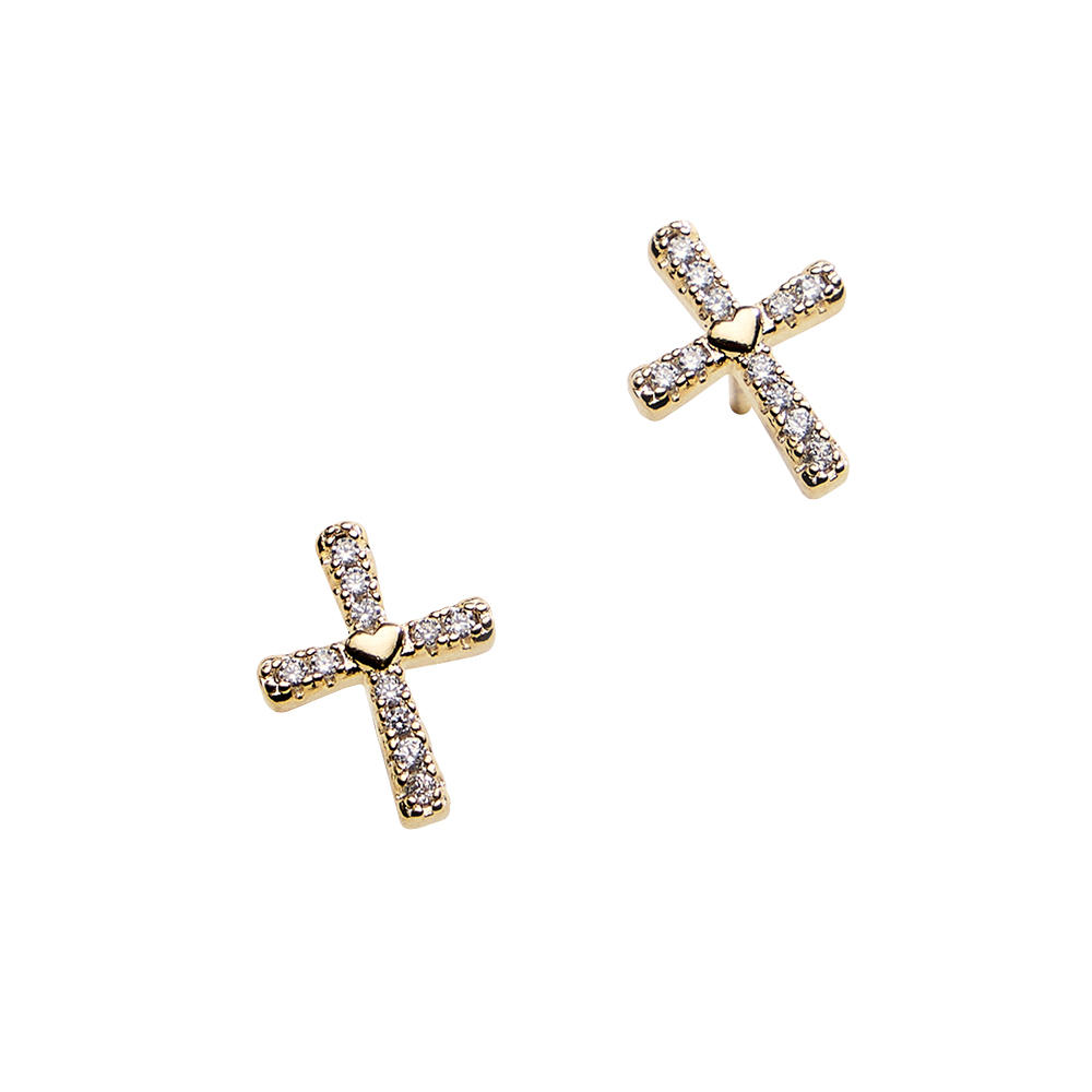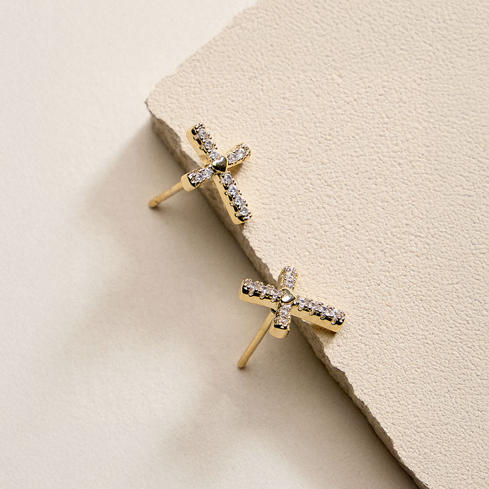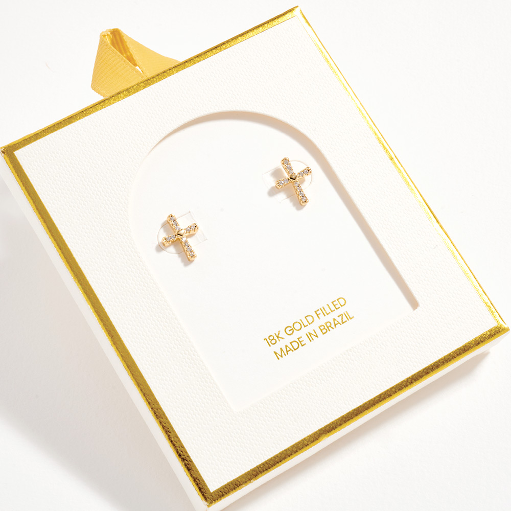 Details • Size : 0.3" X 0.5" • Post Back • Timeless cross stud earrings accented with sparkling CZ stones for a refined yet meaningful look. The compact 5mm size offers subtle shine that works beautifully for everyday wear or special moments. A versatile design that layers easily or stands out as a classic statement. • CZ Cubic Zirconia • Gold Filled • Hypoallergenic • Lead and Nickel Compliant • Made In Brazil