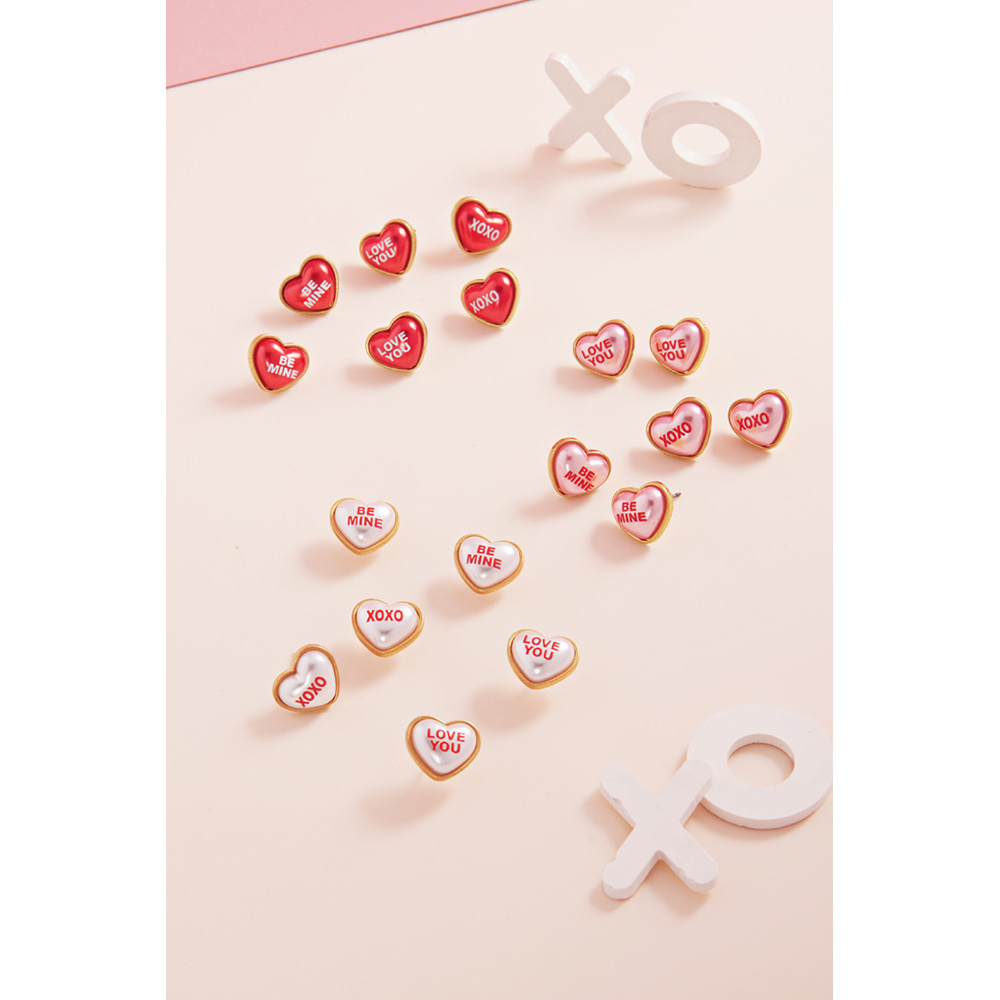 3Pairs - BE MINE LOVE YOU XOXO Message Heart Pearl Stud Earrings