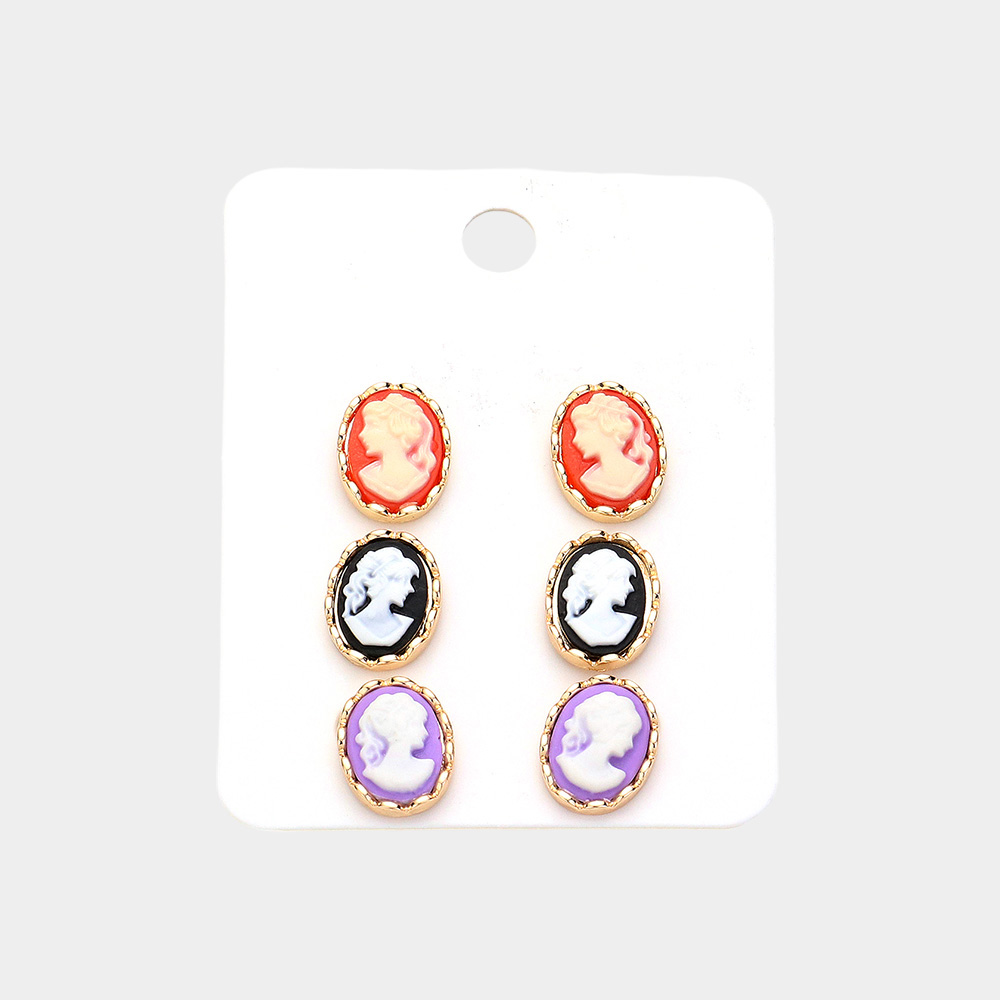 Rhinestone Paved Cameo Pointed Pendant Necklace