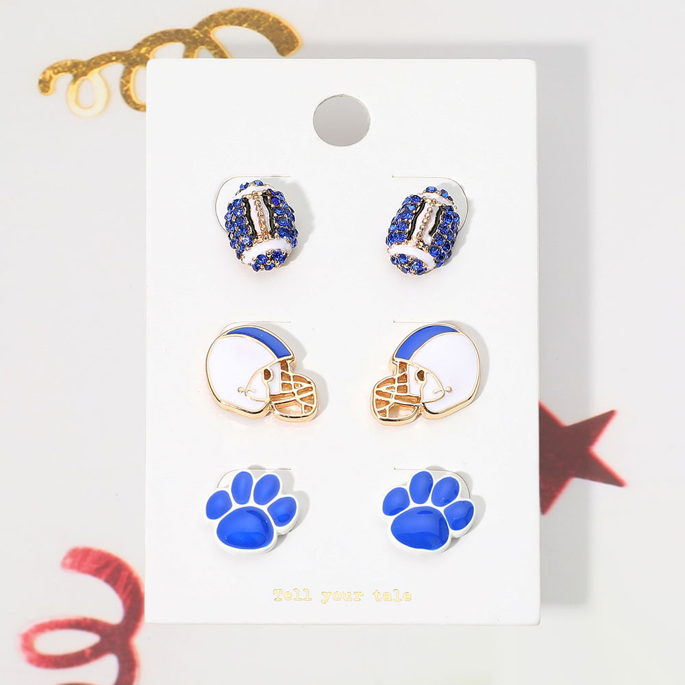 3Pairs - Game Day Spirit Ball Helmet Paw Stud Earring Set