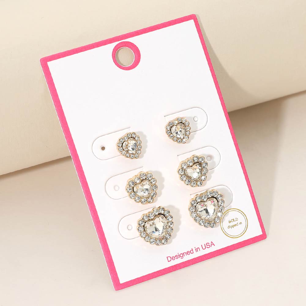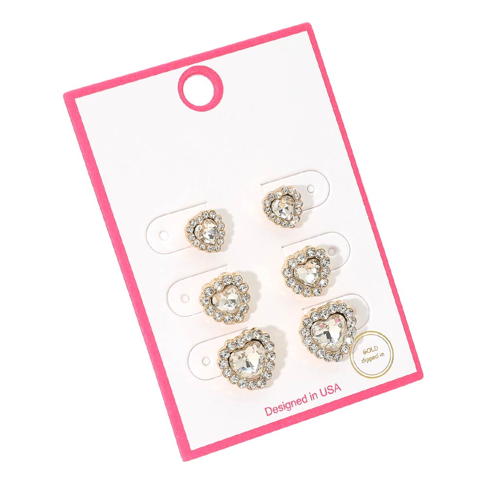 3Pairs - Gold Dipped Heart Halo Stud Earring Set 3Pairs - Gold Dipped Heart Halo Stud Earring Set