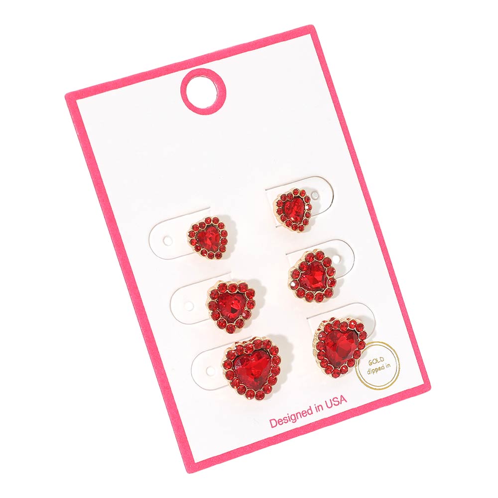 Details • Size : 0.3" - 0.4" L • Post Back • This heart halo stud earring set features multiple heart-shaped designs with sparkling center accents for a polished, elegant look. Perfect for everyday wear, gifting, or boutique displays, these stud earrings offer versatile styling options that easily mix and match for casual, dressy, and special occasion outfits. • Gold Dipped • Sterling Silver Dipped