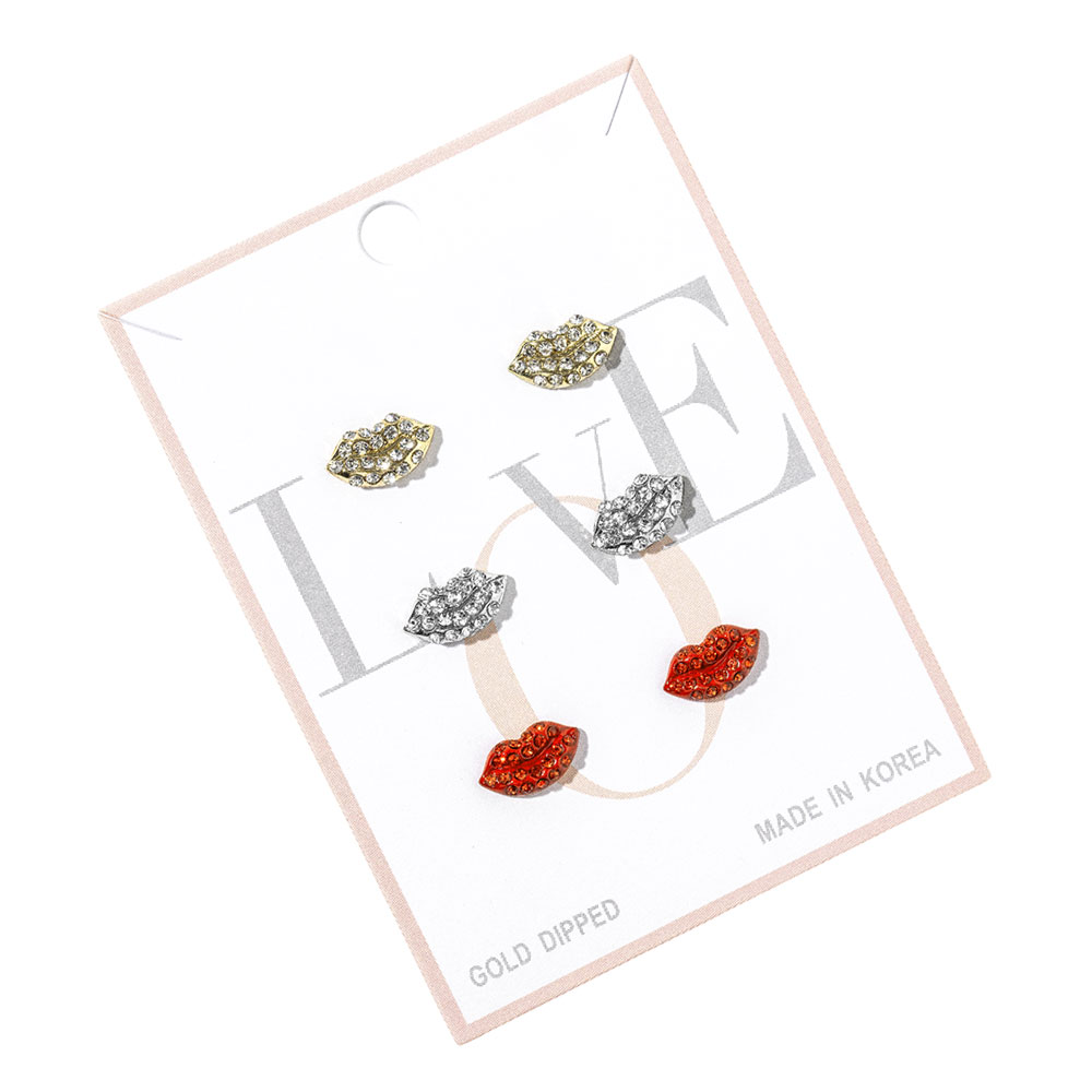 3Pairs - Gold Dipped Rhinestone Studded Mini Lips Stud Earring Set 3Pairs - Gold Dipped Rhinestone Studded Mini Lips Stud Earring Set 3Pairs - Gold Dipped Rhinestone Studded Mini Lips Stud Earring Set 3Pairs - Gold Dipped Rhinestone Studded Mini Lips Stud Earring Set
