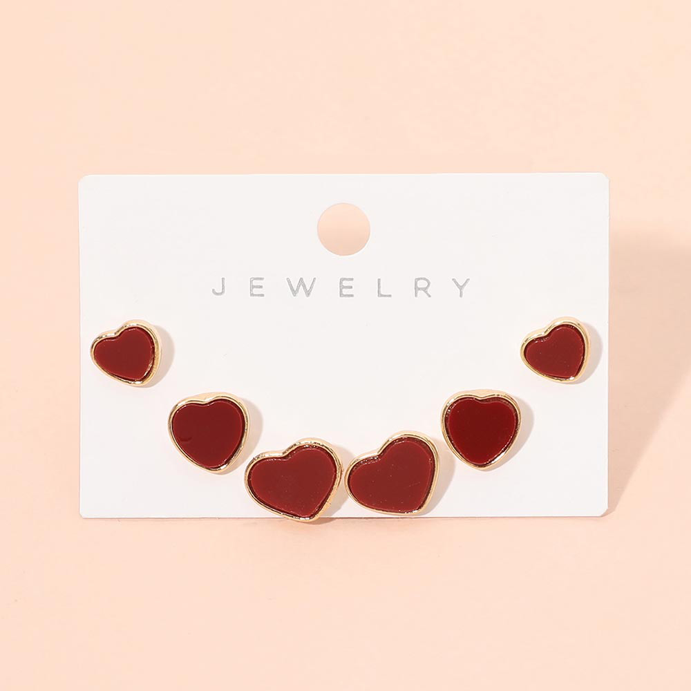 Details • Size : 0.25" - 0.3" L • Post Back • Charming heart stud earring set designed for effortless mix and match styling. These timeless heart shapes add a playful yet elegant accent to everyday looks and special occasions. A versatile accessory choice for gifting, seasonal collections, or creating coordinated jewelry displays. • Lead and Nickel Compliant