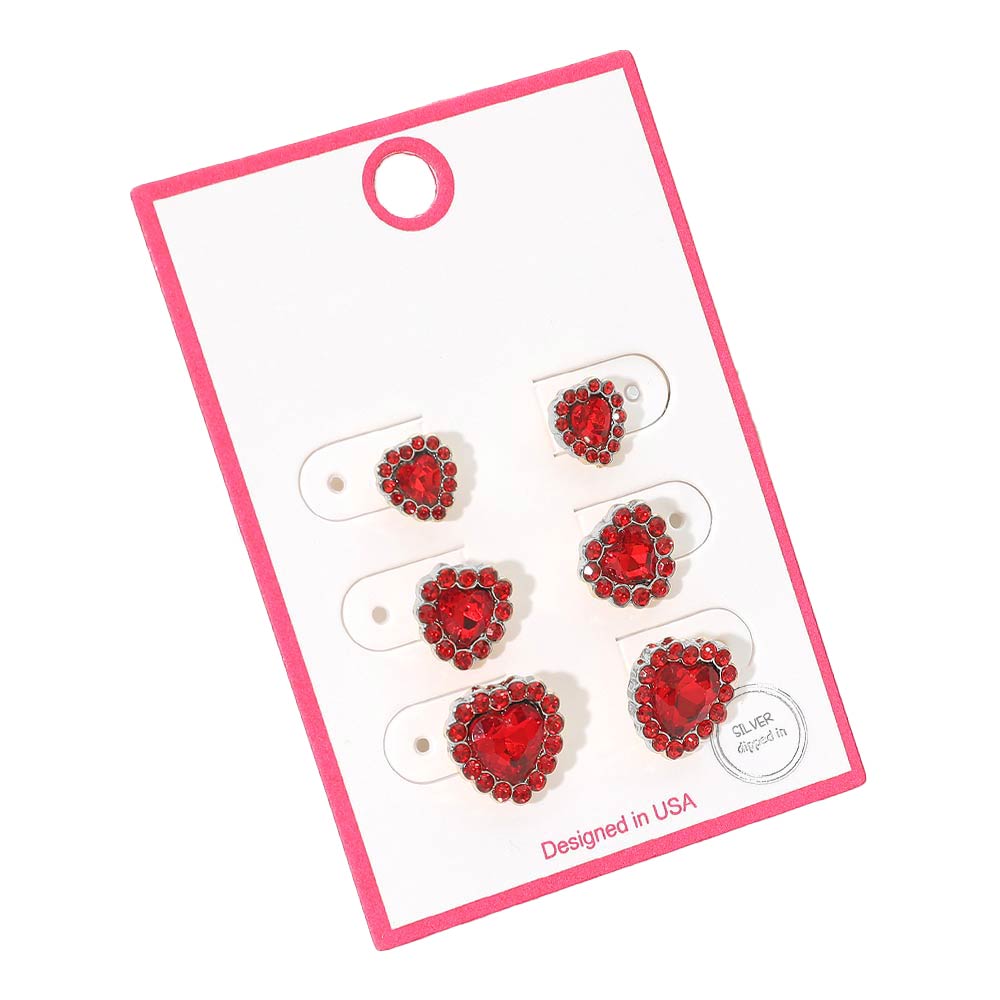 Details • Size : 0.3" - 0.4" L • Post Back • This heart halo stud earring set features multiple heart-shaped designs with sparkling center accents for a polished, elegant look. Perfect for everyday wear, gifting, or boutique displays, these stud earrings offer versatile styling options that easily mix and match for casual, dressy, and special occasion outfits. • Sterling Silver Dipped • Lead and Nickel Compliant