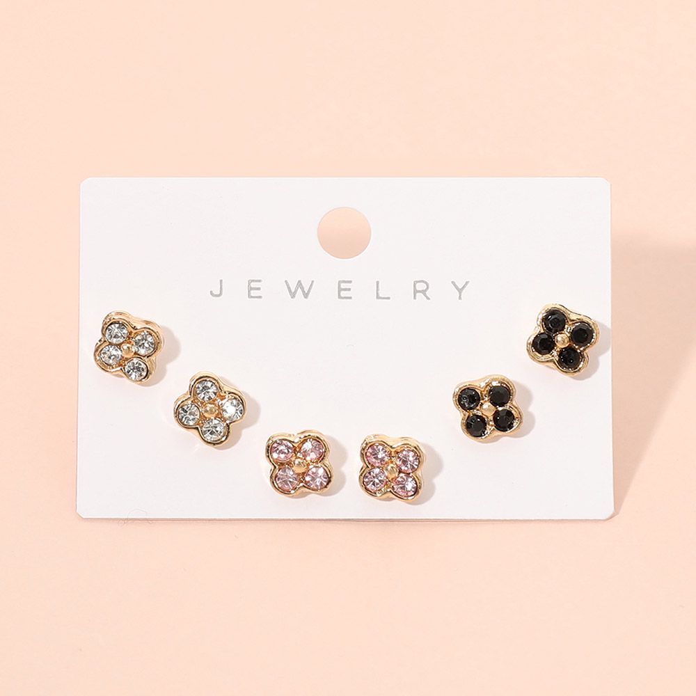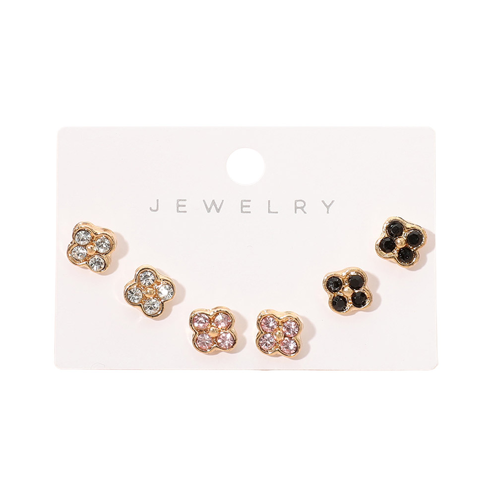 Details • Size : 0.25" L • Post Back • Delicate quatrefoil stud earring set featuring multiple coordinating designs accented with sparkling details. Perfect for mixing and matching, this versatile set adds charm to everyday outfits or special occasions, making it an easy gift option for birthdays, holidays, and stylish seasonal collections. • Lead and Nickel Compliant