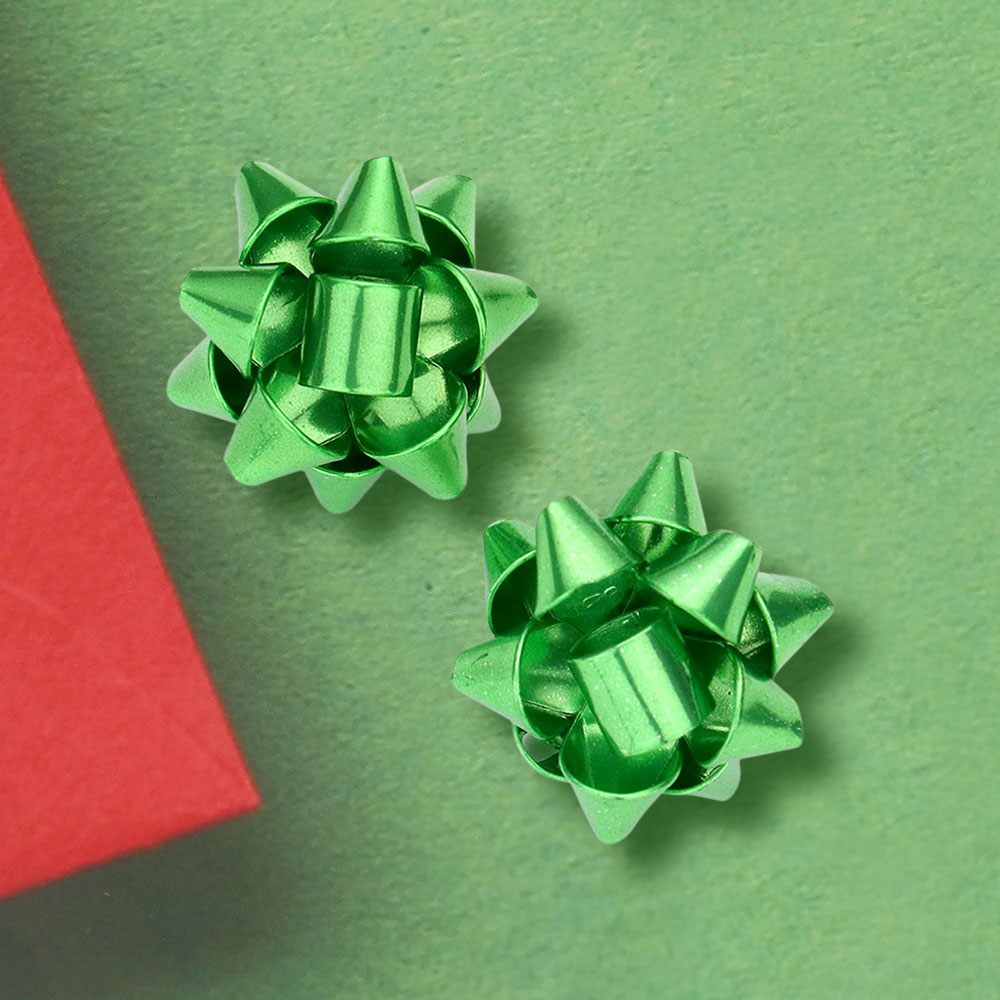 Details • Size : 0.75" X 0.75" • Post Back • Add a playful festive touch with these charming gift bow earrings. Designed to resemble classic ribbon bows, they bring a fun, whimsical accent to your holiday outfits or party looks. Perfect for themed events, celebrations, or gifting, offering a unique and cheerful accessory choice. • Lead and Nickel Compliant