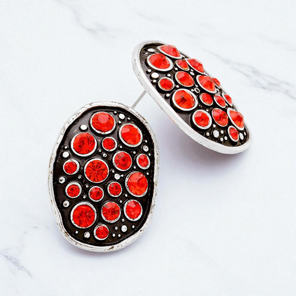Greek Pattern Detailed Rhinestone Embellished Square Earrings