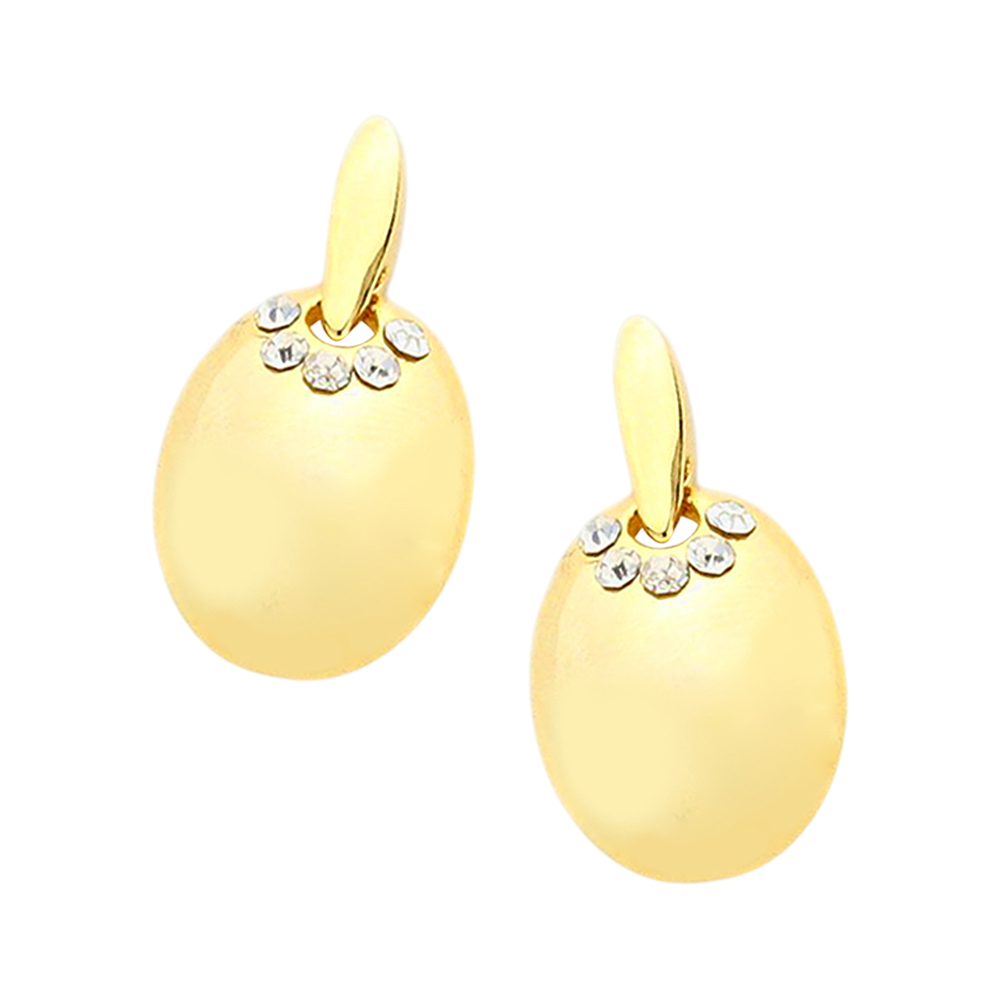 Crystal detail oval metal stud earrings