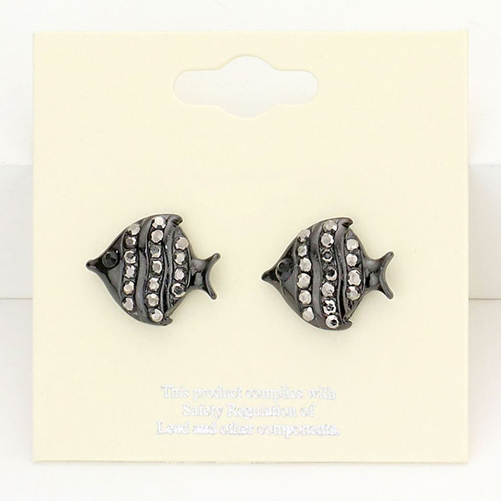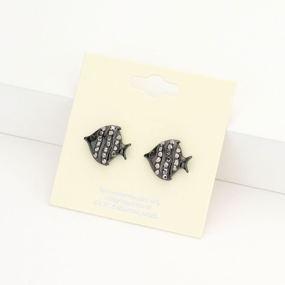 • These fish crystal stud earrings add a touch of ocean-inspired charm and sparkle to your look. Featuring a playful fish design adorned with glimmering stones, they bring a blend of elegance and whimsy, perfect for expressing your unique style with a fun, polished flair.