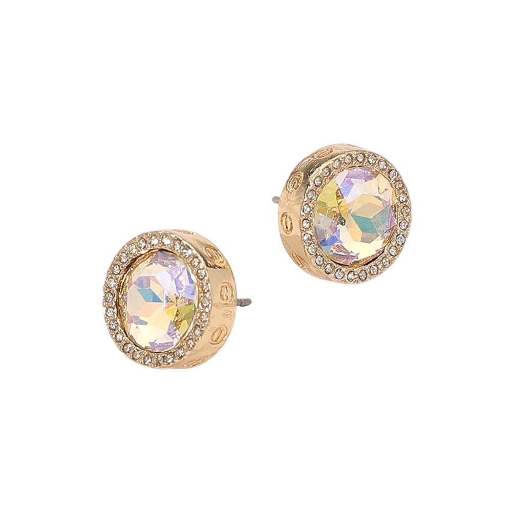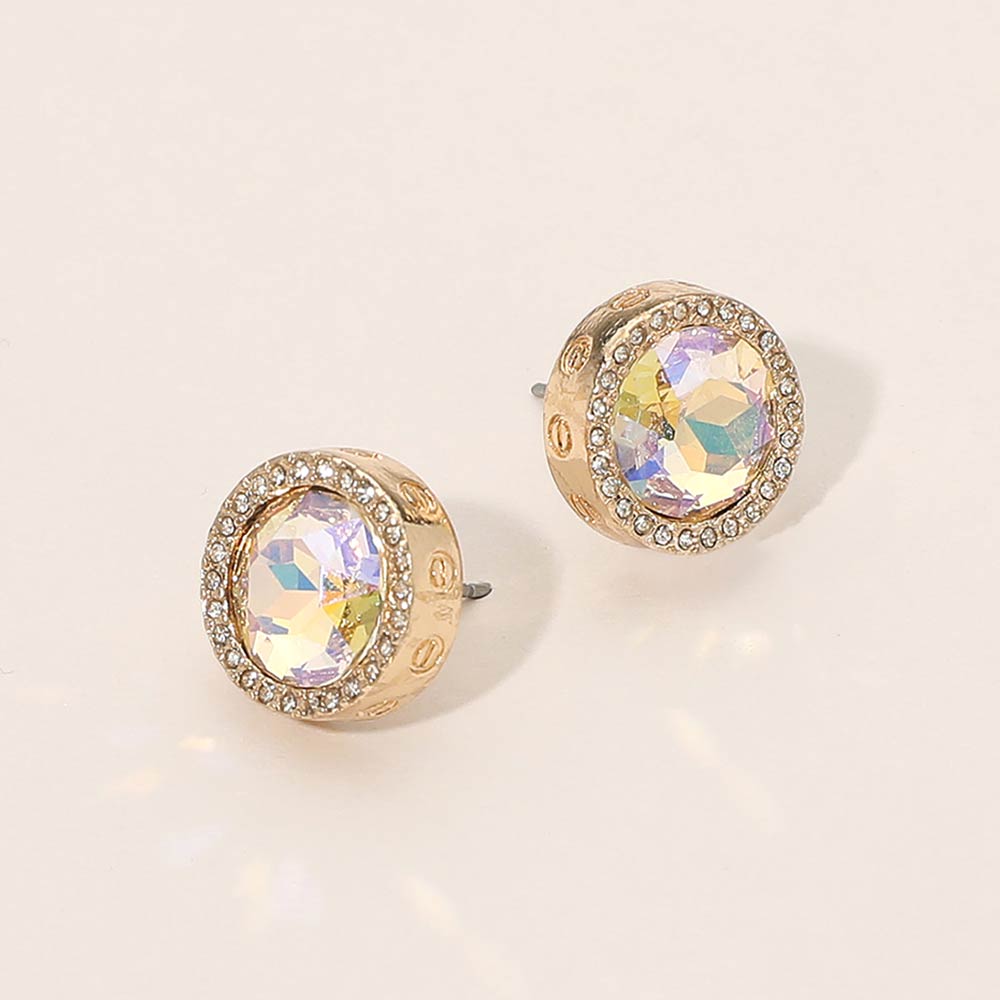 • Refined stud earrings featuring a faceted center design framed by a detailed halo for added dimension and shine. The classic round silhouette offers a balanced look that transitions easily from daytime wear to evening styling, making these studs ideal for boutiques, gifting collections, and everyday fashion displays.