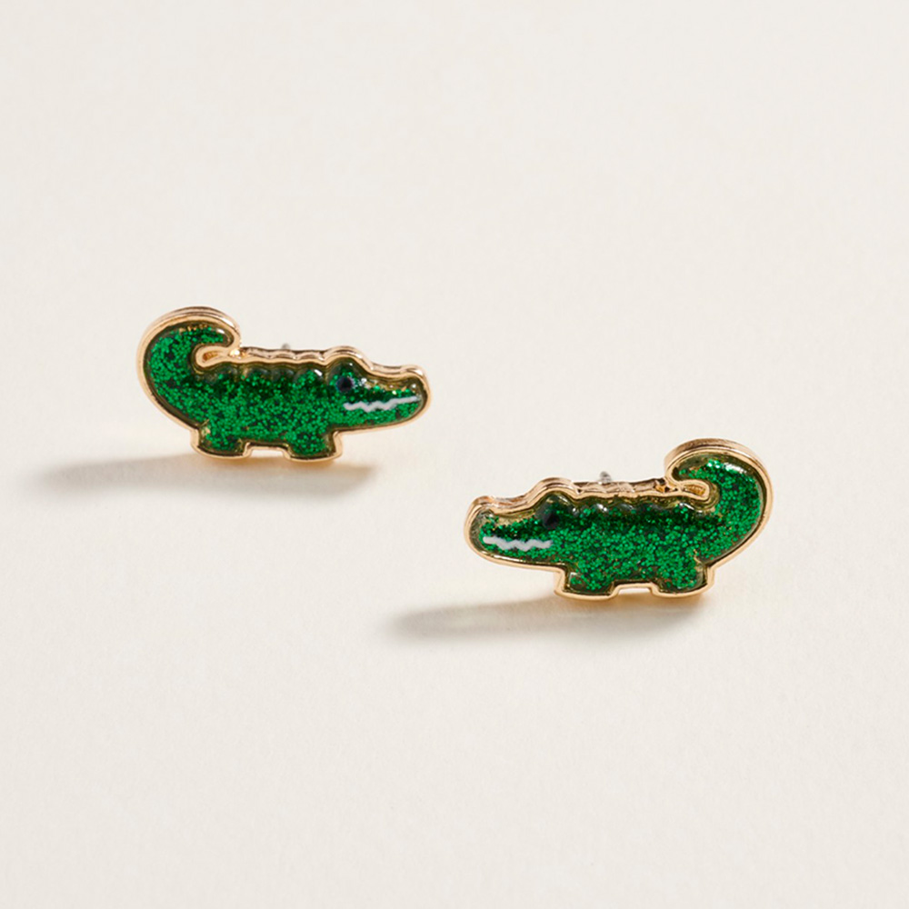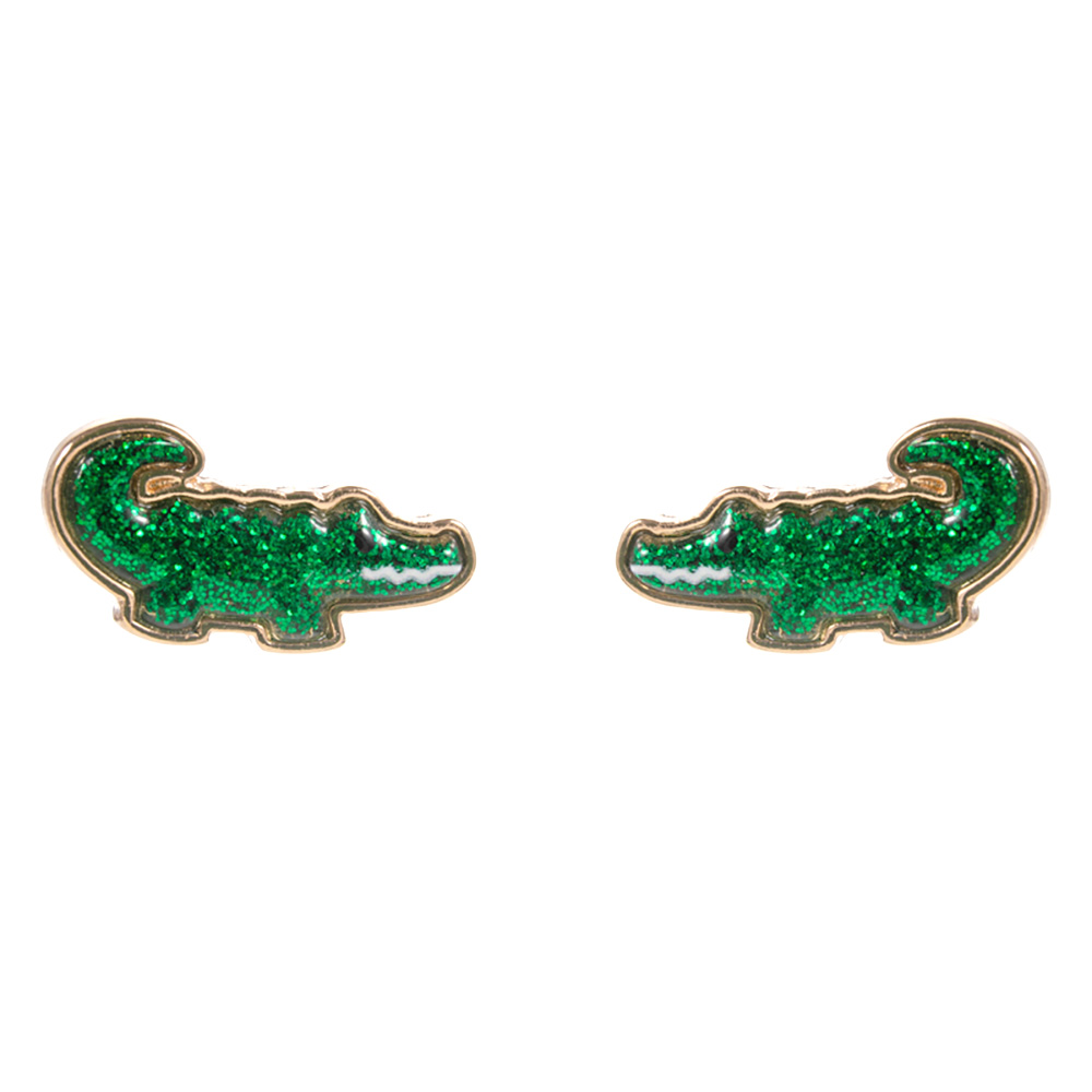 • Fun alligator stud earrings featuring a shimmering glitter finish for a playful, eye-catching look. Perfect for adding personality to casual outfits or themed events, these unique earrings bring charm and bold style, making them a standout accessory for any jewelry collection.