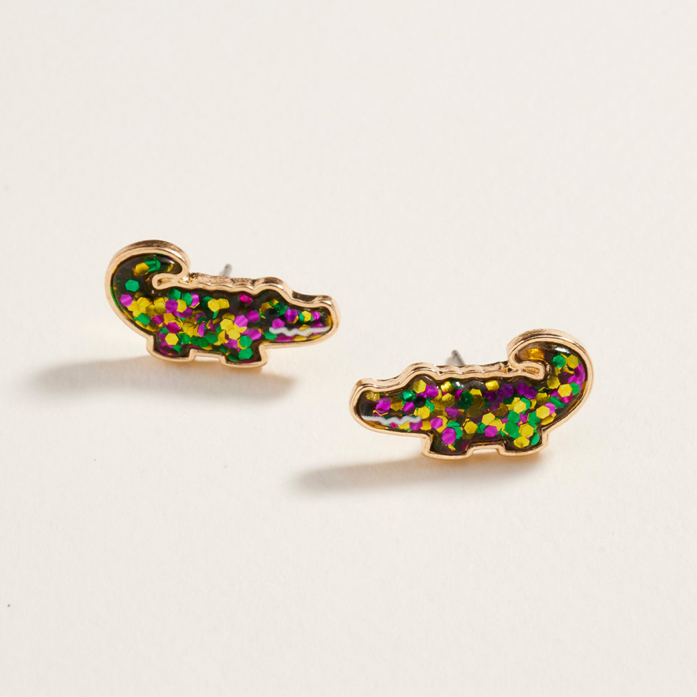 Glitter Mardi Gras Alligator Stud Earrings Glitter Mardi Gras Alligator Stud Earrings
