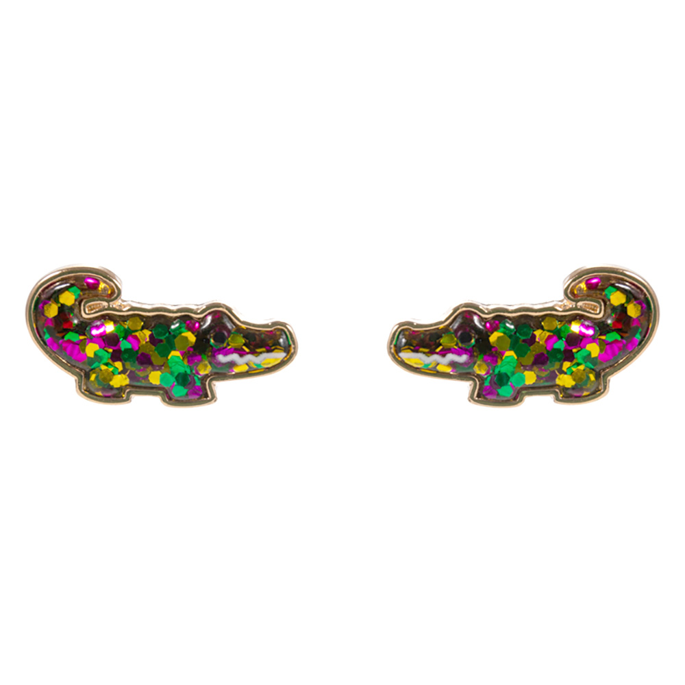 Glitter Mardi Gras Alligator Stud Earrings