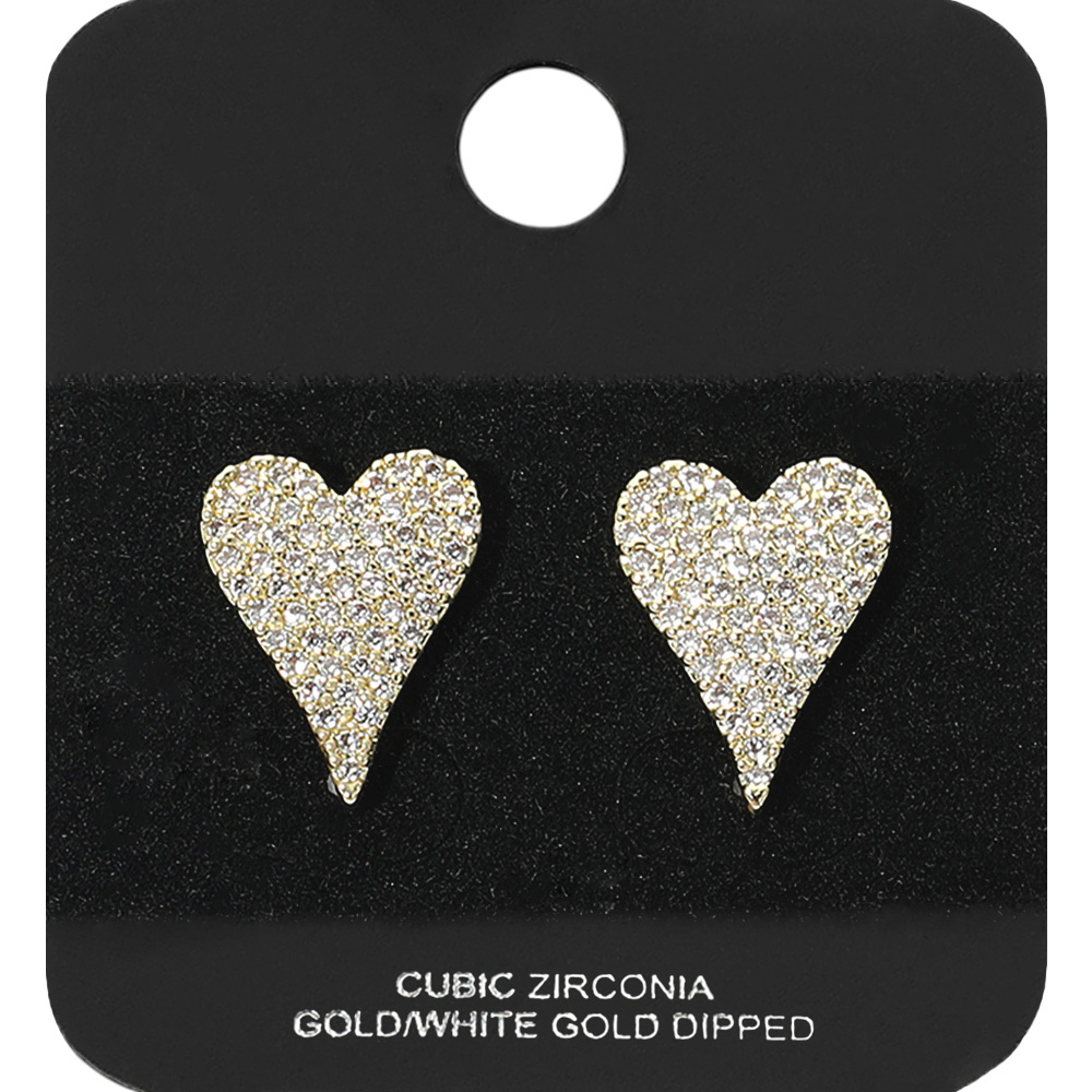 Details • Size : 0.5" X 0.7" • Post Back • Add romance and shine with these sparkling heart stud earrings. Adorned with cubic zirconia stones, they bring timeless elegance to casual looks or dressy outfits, perfect for gifting or daily wear. • CZ Cubic Zirconia • Gold Dipped • Lead and Nickel Compliant