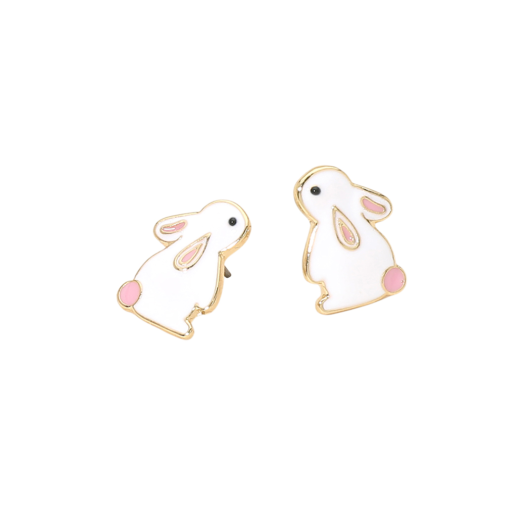 Details • Size : 0.3" X 0.6" • Post Back • Adorable bunny stud earrings featuring a playful animal silhouette with charming details. Designed for everyday wear, gifting, and seasonal assortments, these lightweight studs add a fun accent to casual outfits, holiday collections, and youth-friendly displays. A sweet novelty accessory that pairs easily with spring themes, Easter promotions, and boutique jewelry selections. • Gold Dipped • Hypoallergenic • Lead and Nickel Compliant