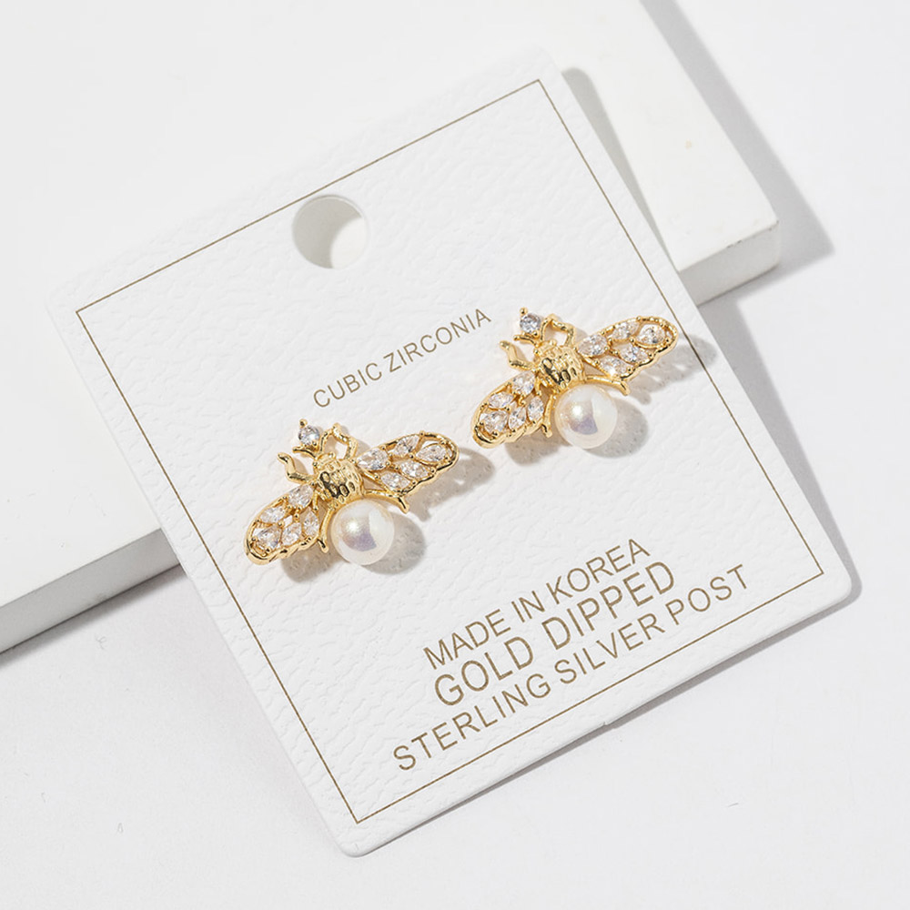 Gold Dipped Pearl Accent CZ Stone Paved Bee Stud Earrings Gold Dipped Pearl Accent CZ Stone Paved Bee Stud Earrings Gold Dipped Pearl Accent CZ Stone Paved Bee Stud Earrings Gold Dipped Pearl Accent CZ Stone Paved Bee Stud Earrings