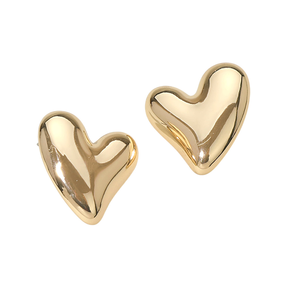 Details • Size : 1" X 1" • Post Back • These puffy heart stud earrings feature a smooth sculpted heart shape with a bold yet minimal profile. Designed to sit comfortably on the ear, they offer a timeless romantic look perfect for everyday wear, gifting, boutiques, special occasions, and effortless styling across casual or dressy outfits. • Lead and Nickel Compliant