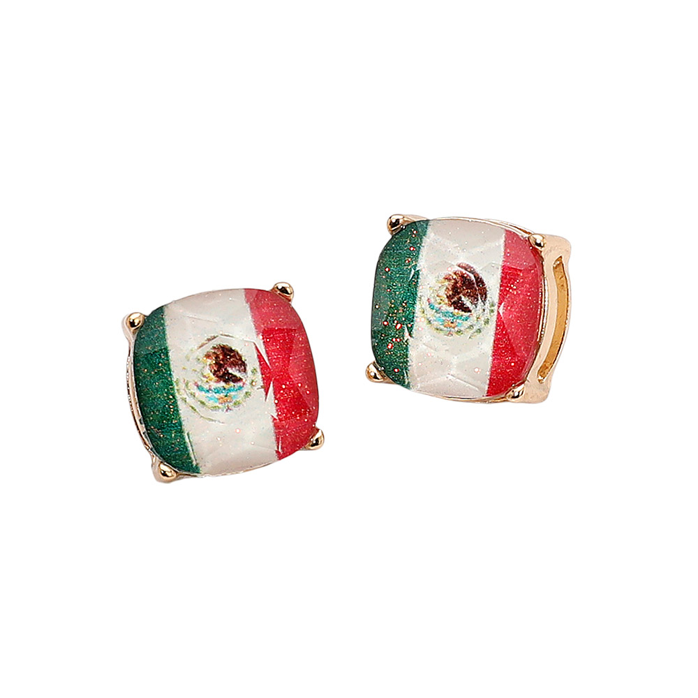 Mexico Flag Printed Faceted Cushion Stud Earrings Mexico Flag Printed Faceted Cushion Stud Earrings Mexico Flag Printed Faceted Cushion Stud Earrings
