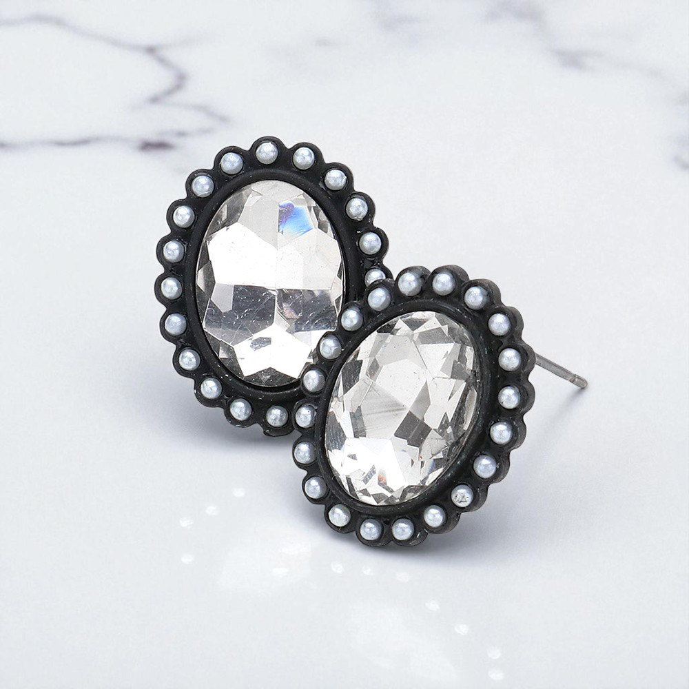 Pearl Trimmed Oval Drop Stud Earrings