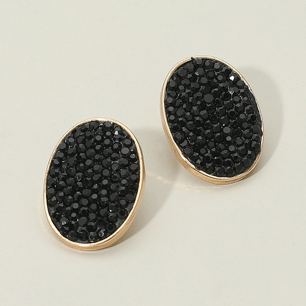 Details • Size : 0.75" X 1" • Post Back • Elegant oval stud earrings encrusted with shimmering rhinestones for a radiant finish. Lightweight and versatile, they add sparkle to casual outfits or evening attire. Perfect for everyday wear, parties, or gifting, these earrings offer timeless beauty and a touch of glamour to any jewelry collection. • Lead and Nickel Compliant